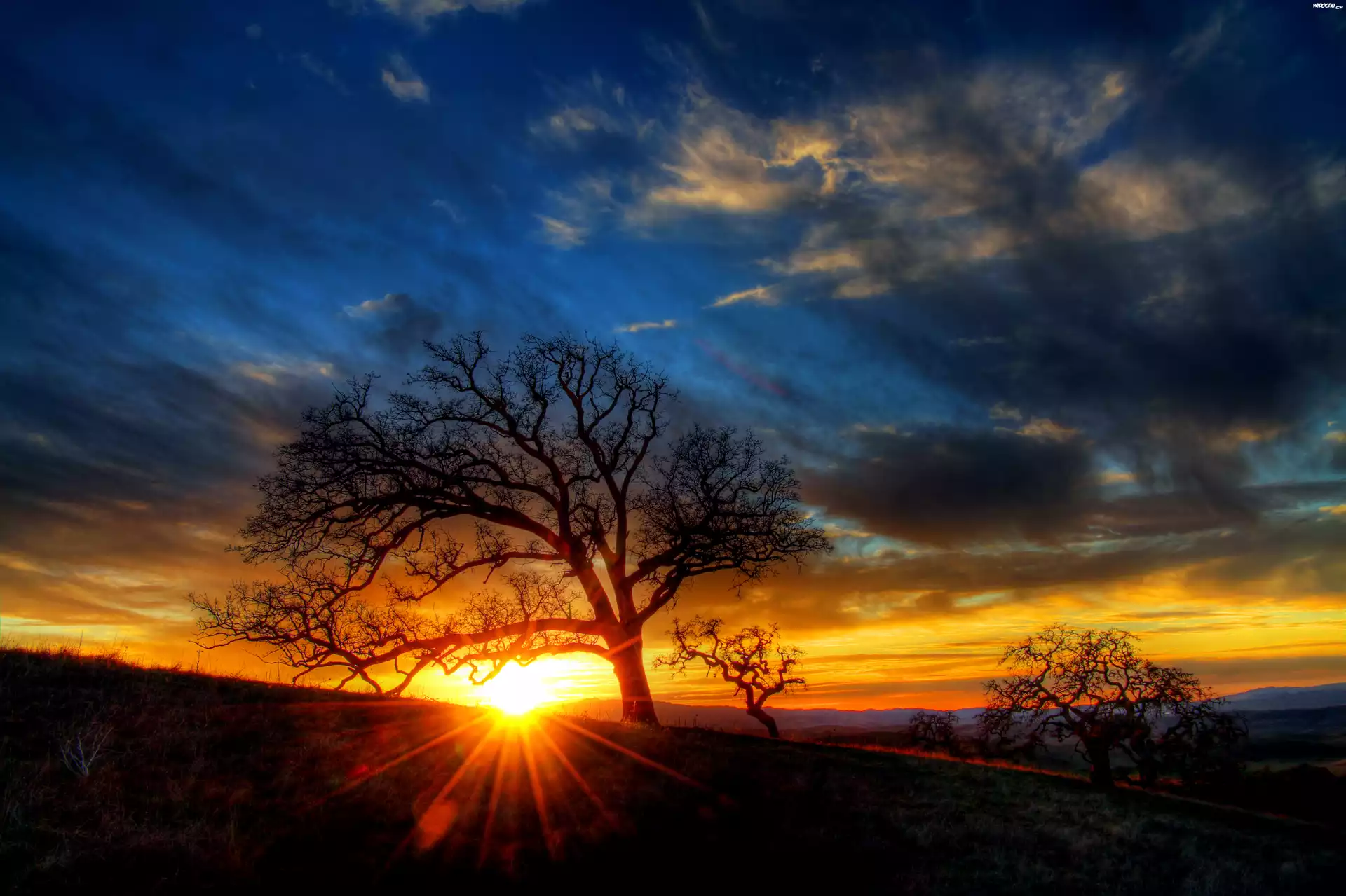 Zachód słońca, Niebo, Drzewo