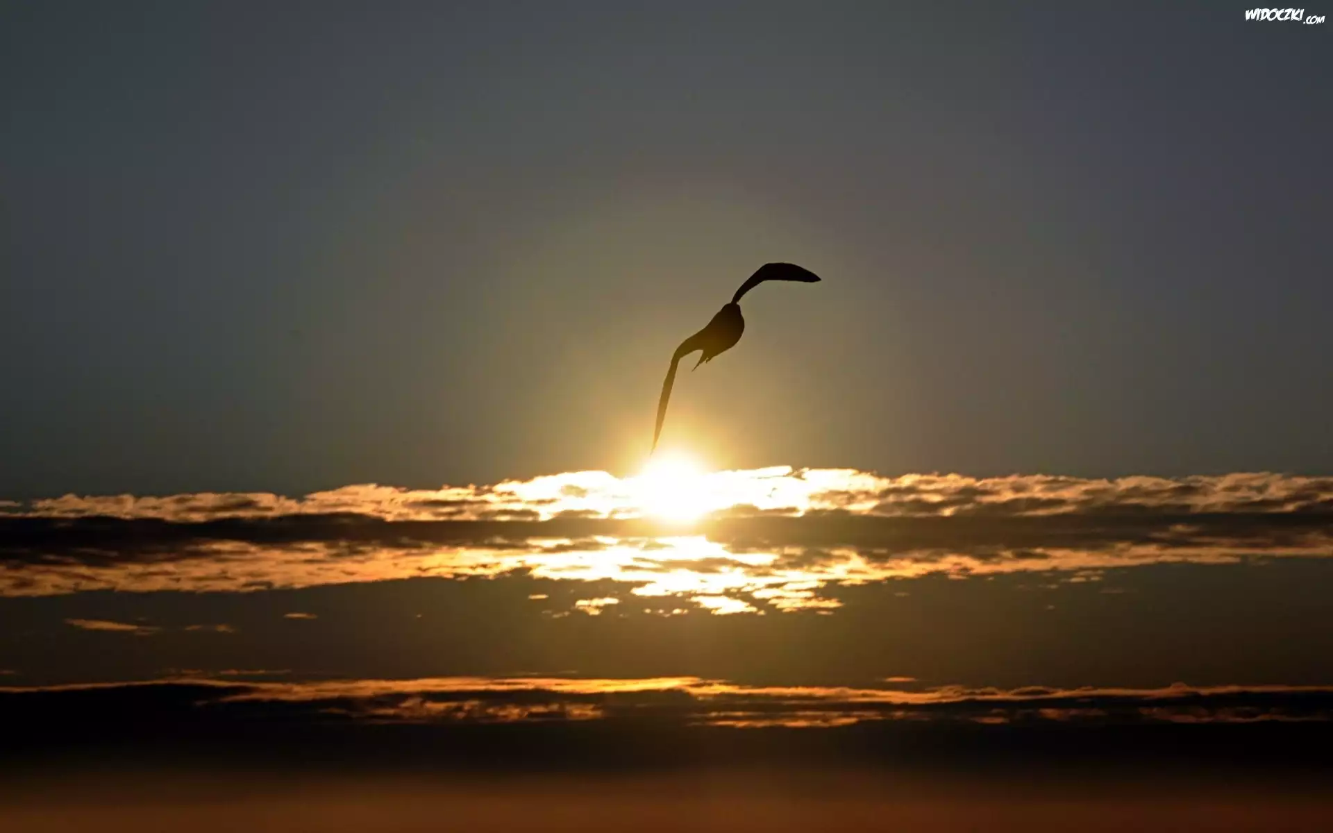 Zdjęcia, Zachód, Słońca, Niebo, Ptak