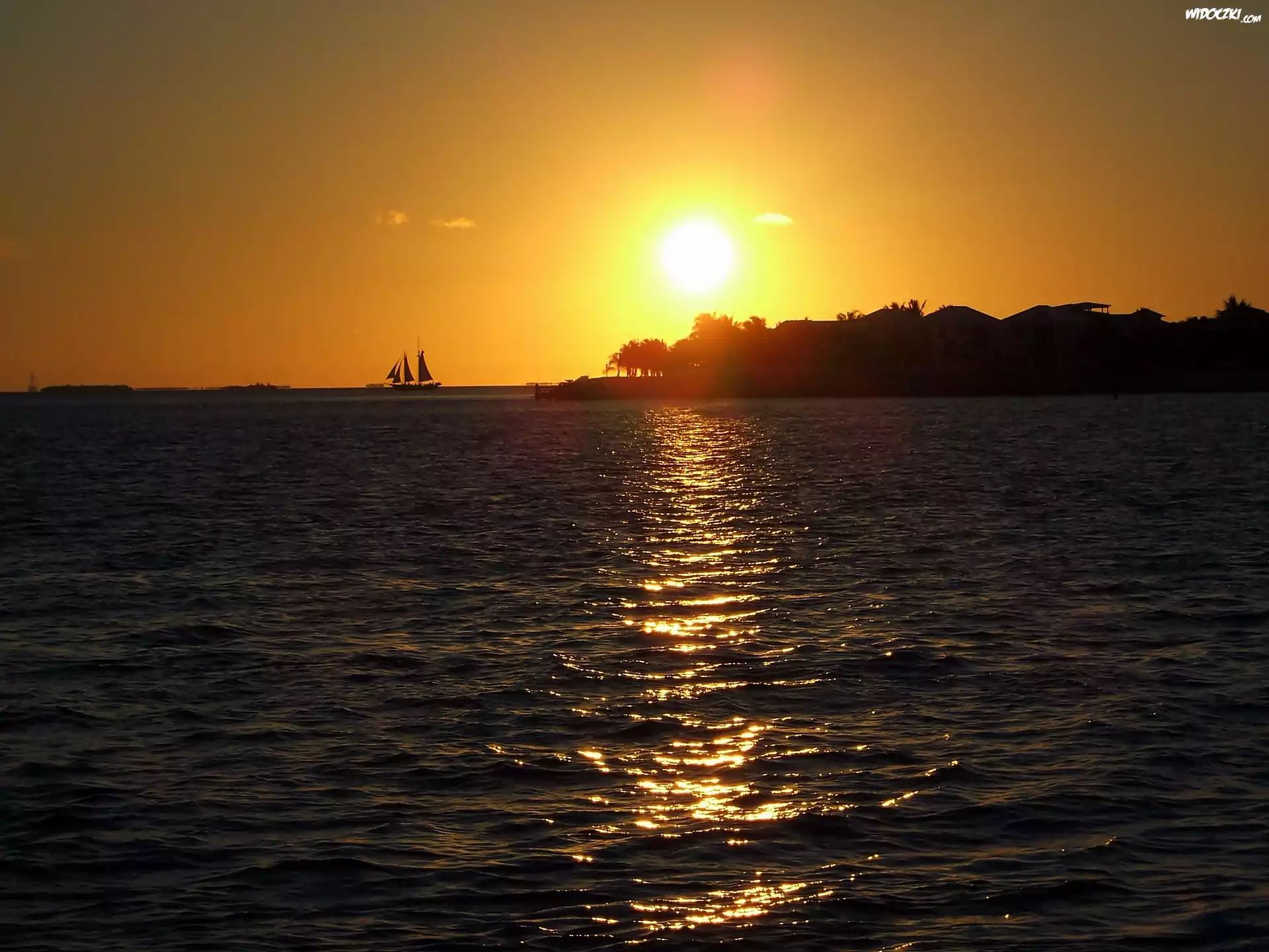 Zdjęcia, Zachód, Słońca, Jezioro, Łódź, Drzewa