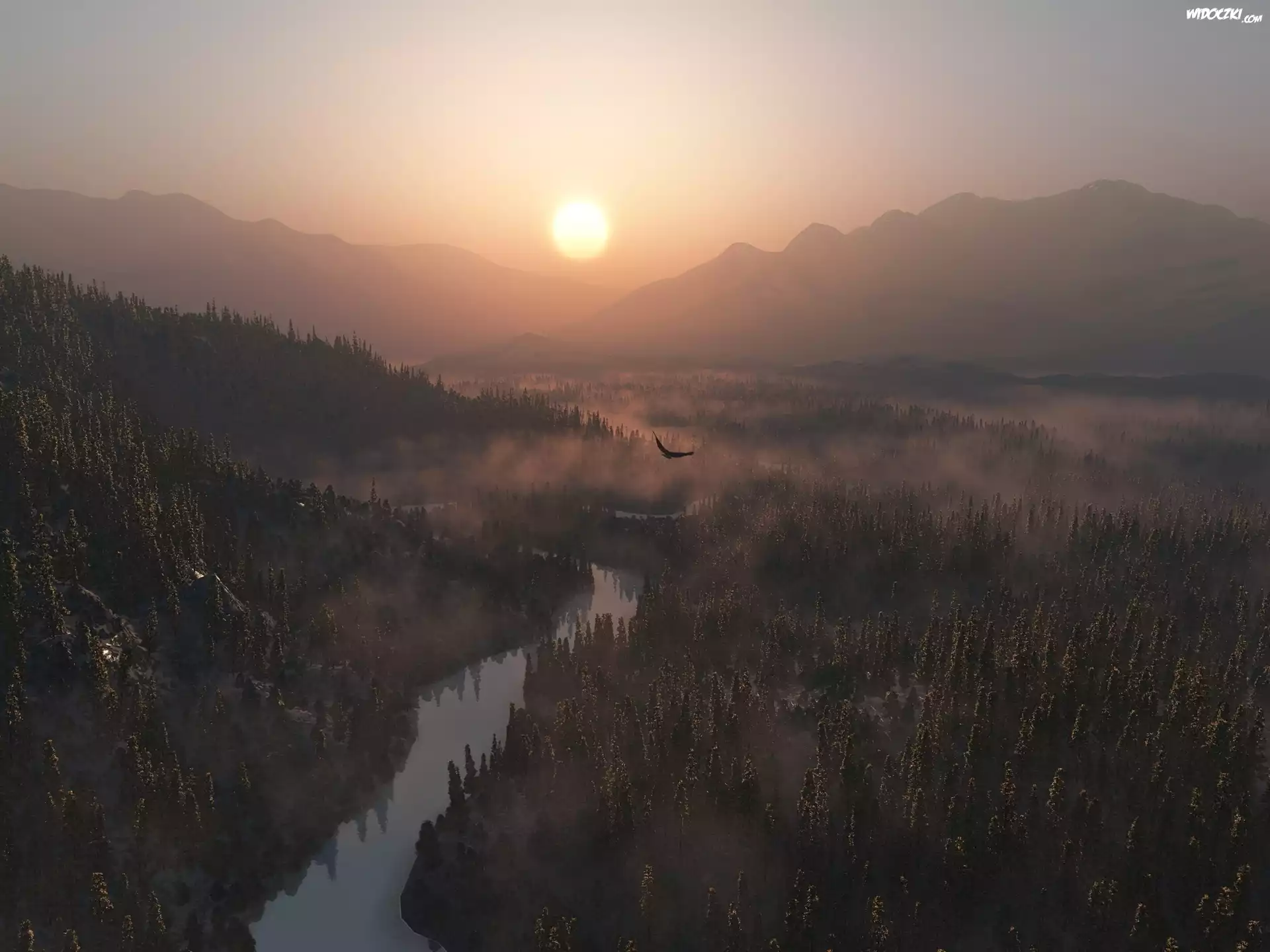 Zdjęcia, Orzeł, Zachód, Słońca