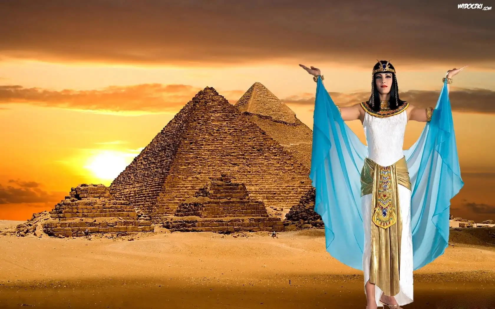 Zdjęcia, Zachód, Słońca, Piramidy, Kobieta