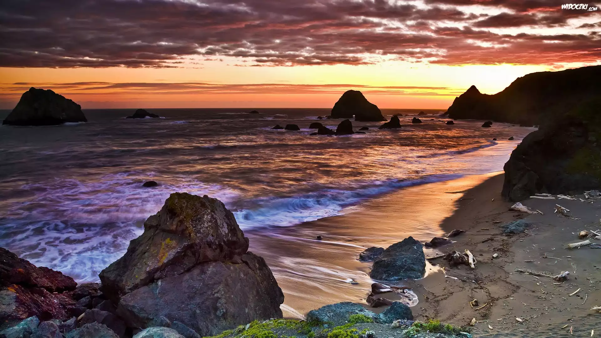 Zdjęcia, Zachód Słońca, Kamienie, Plaża, Morze