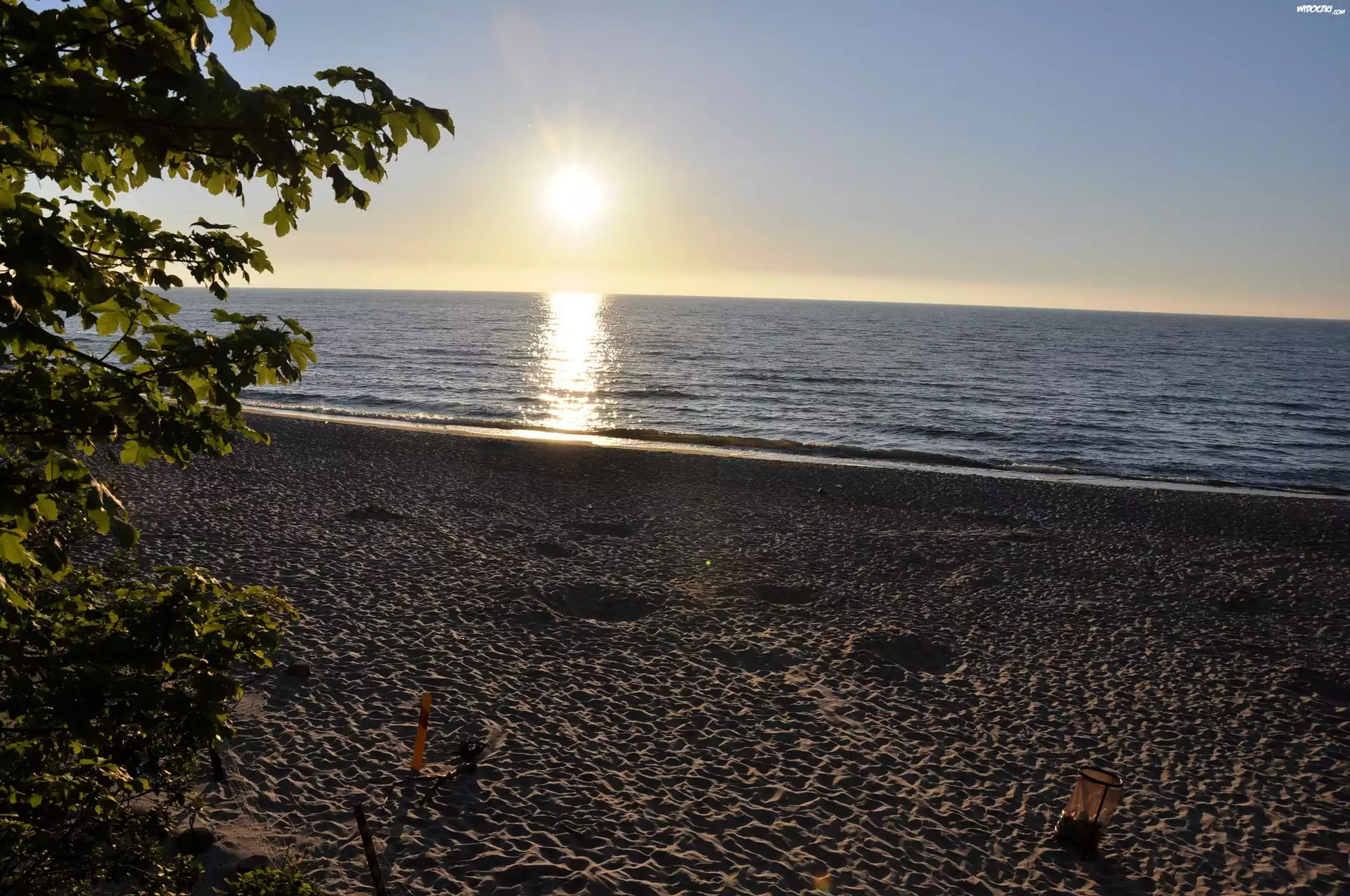Zachód, Słońca, Morze, Plaża, Pobierowo