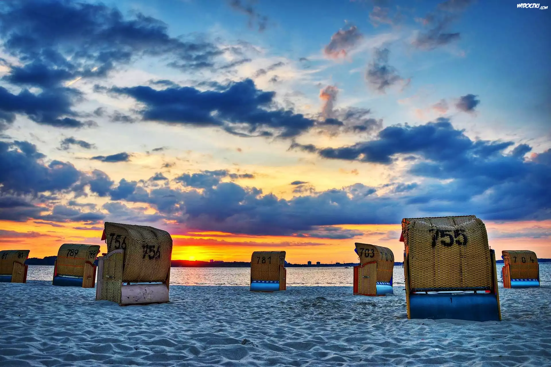Zdjęcia, Zachód, Słońca, Plaża, Kosze