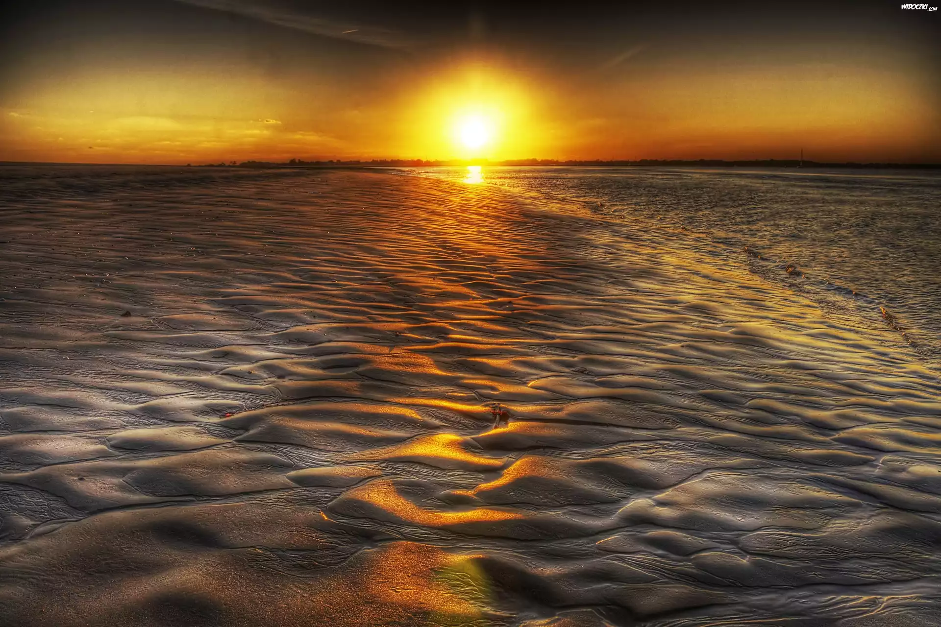 Zdjęcia, Zachód, Słońca, Plaża, Morze