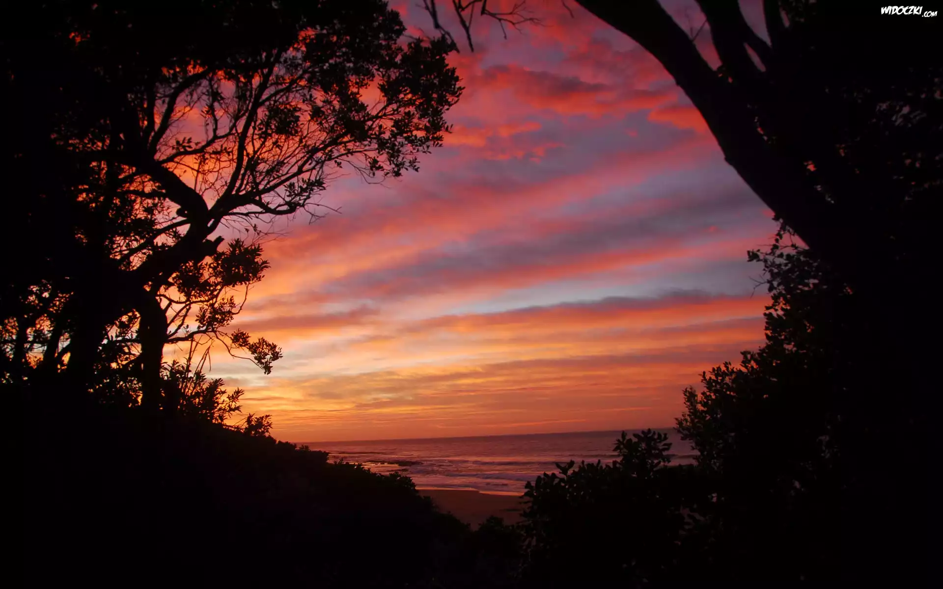 Zdjęcia, Zachód, Słońca, Plaża, Niebo