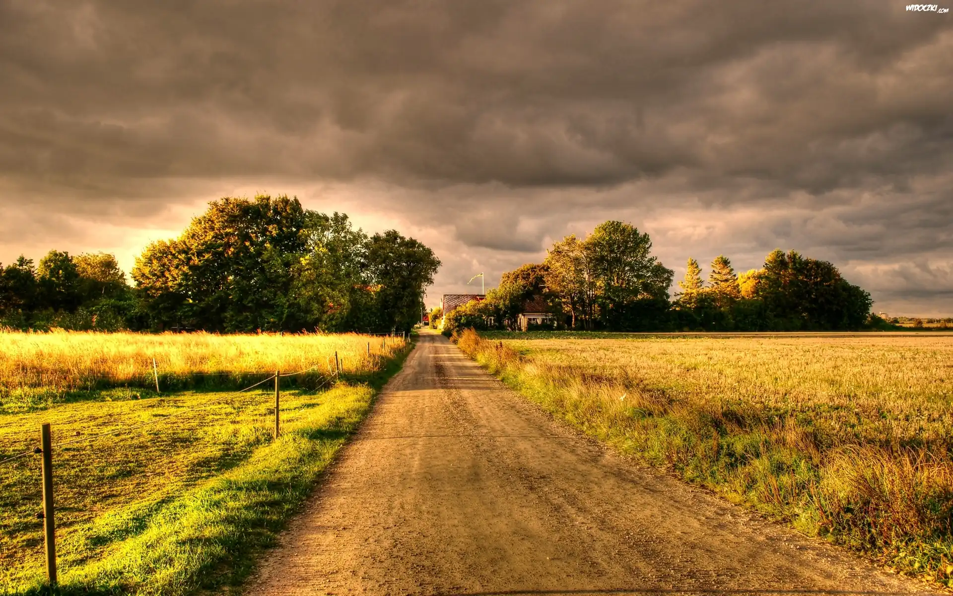 Zdjęcia, Zachód, Słońca, Chmury, Pola, Droga