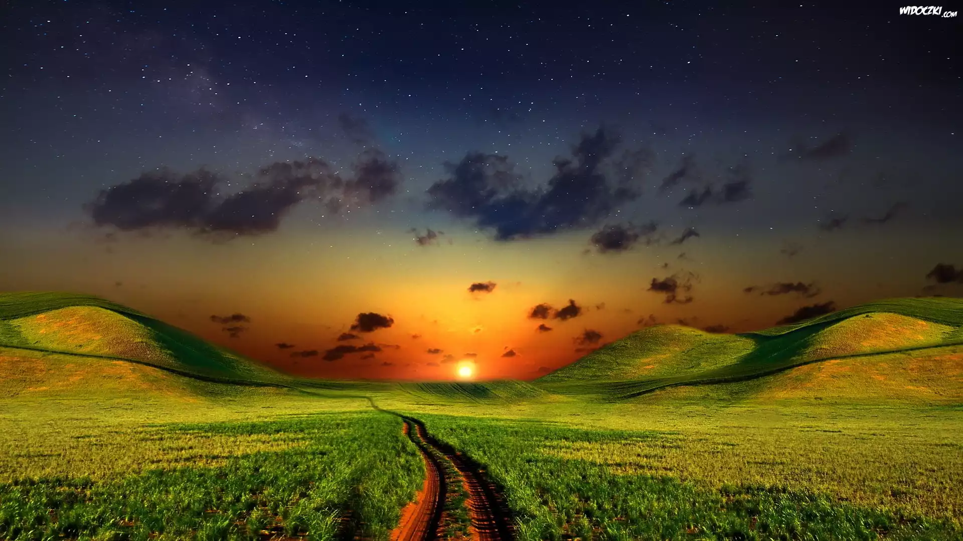 Zdjęcia, Zachód, Słońca, Pola, Ścieżka