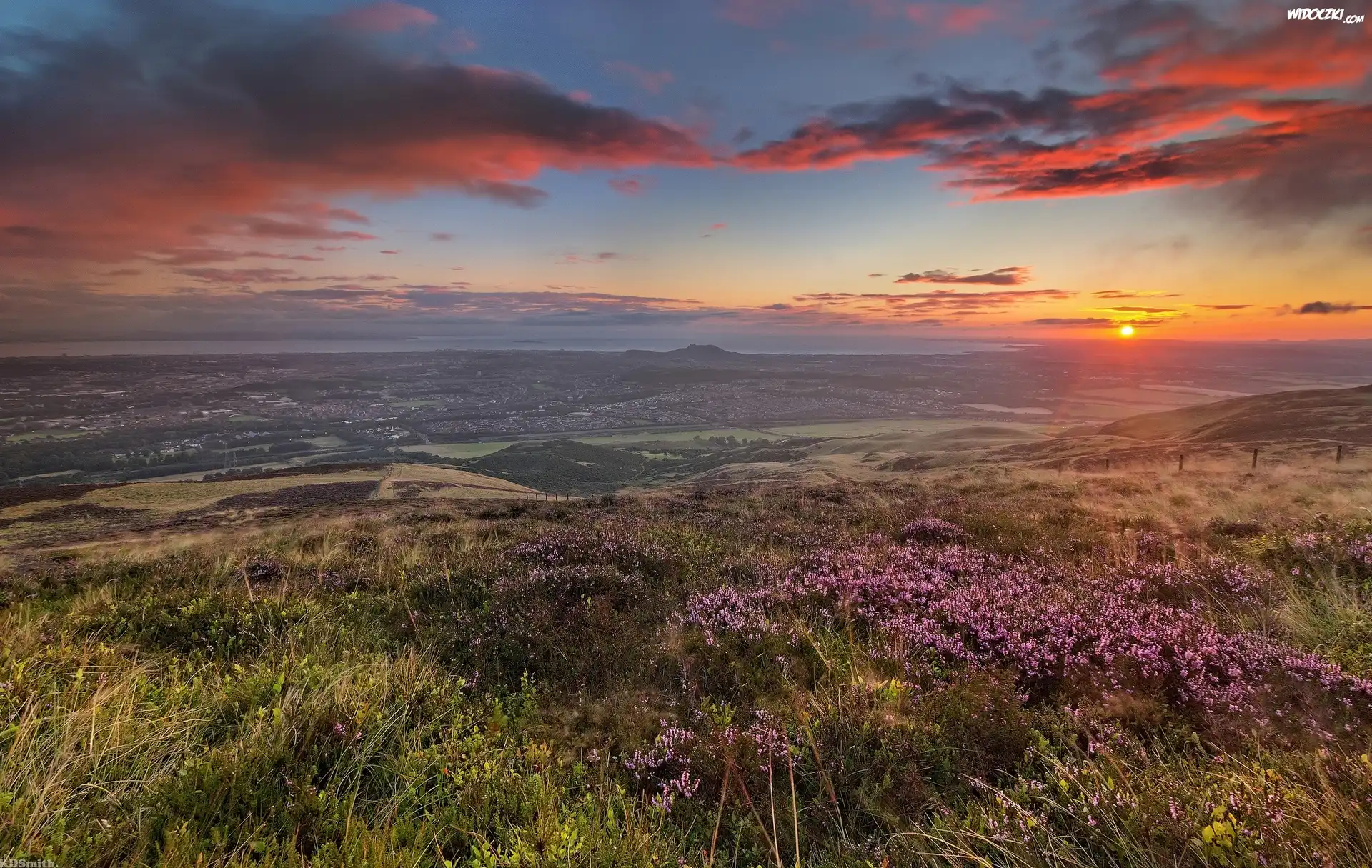 Zdjęcia, Zachód, Słońca, Pola, Kwiaty