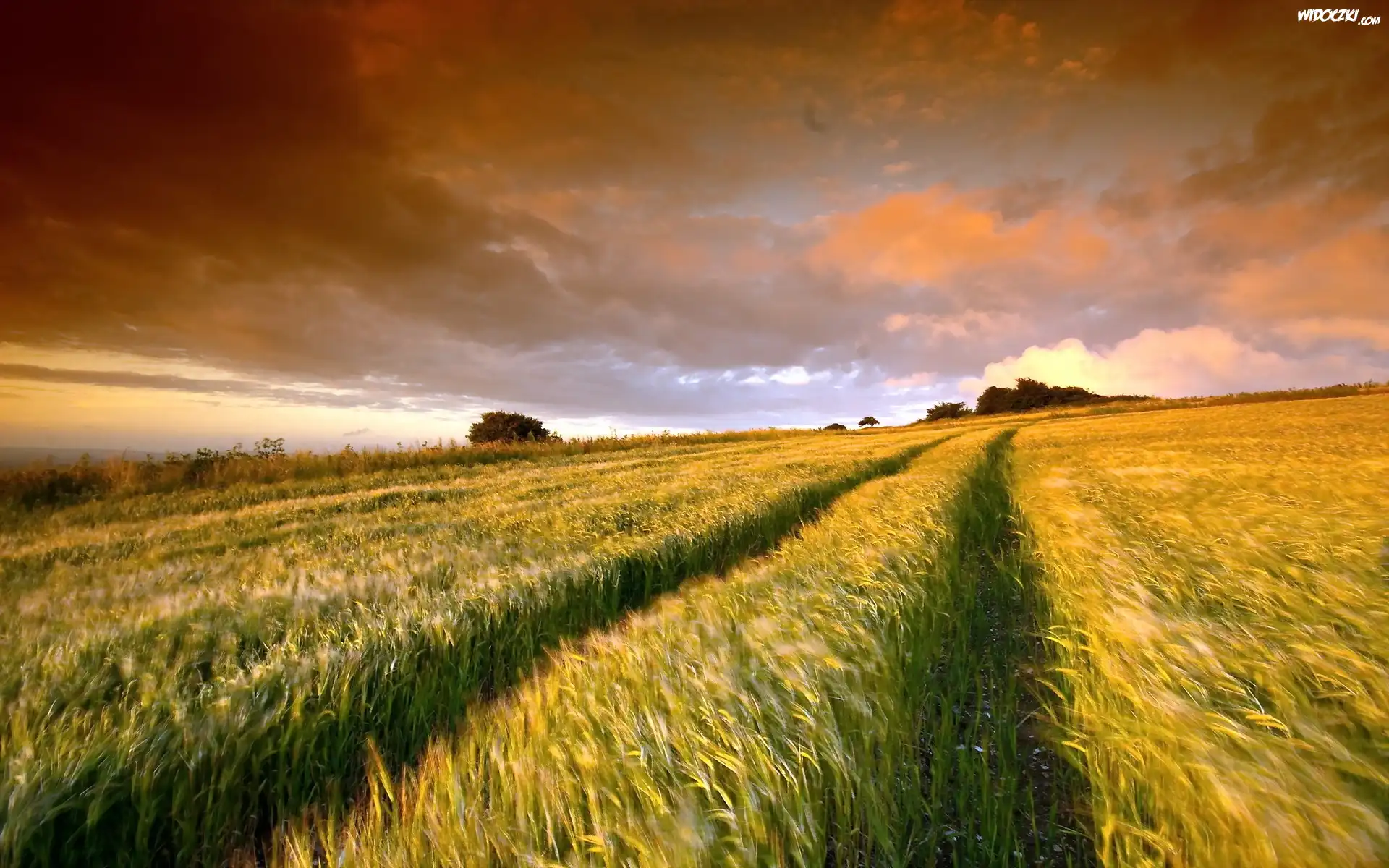 Zdjęcia, Zachód, Słońca, Pola, Zboża