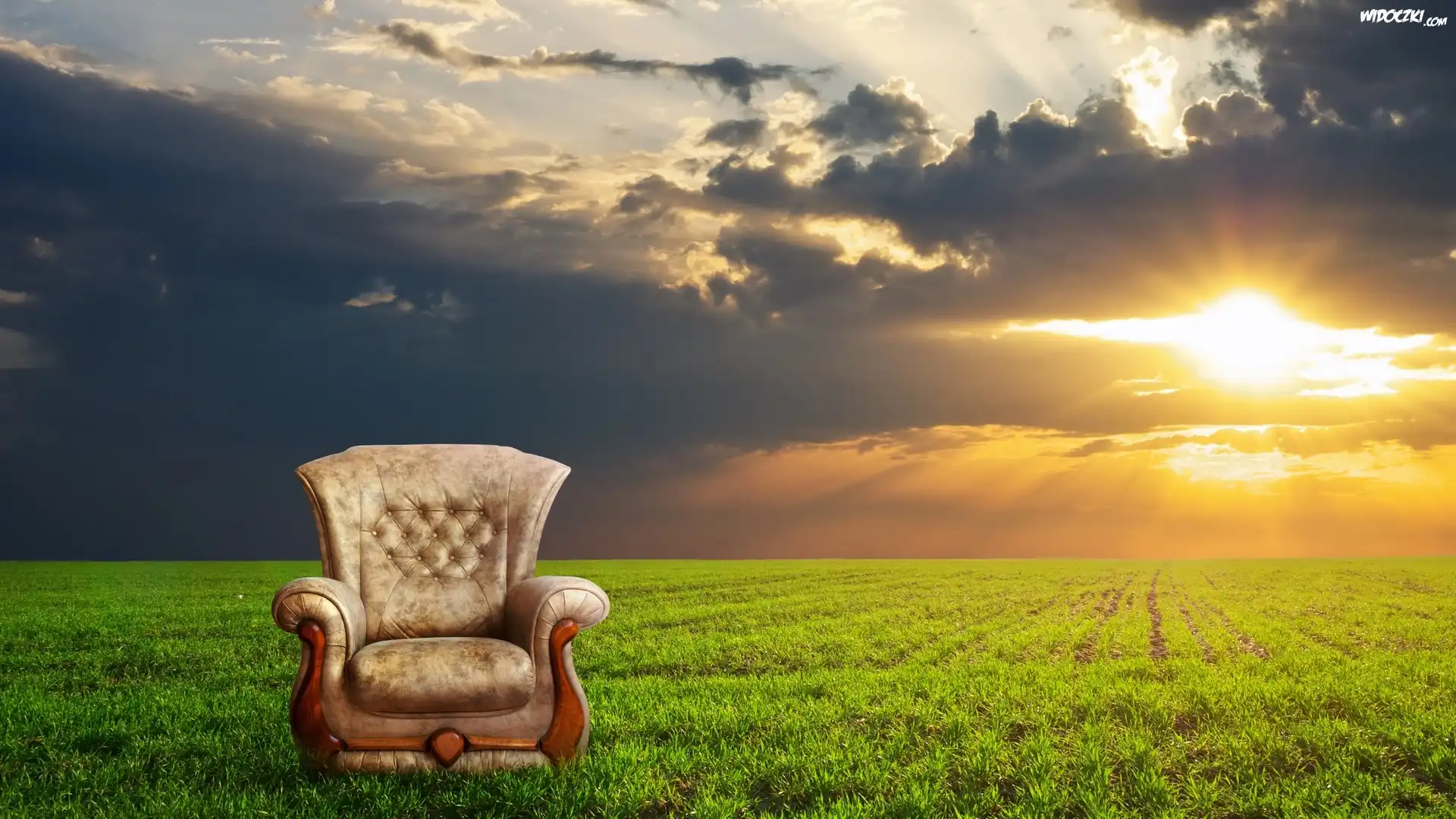 Zdjęcia, Zachód Słońca, Pole, Fotel