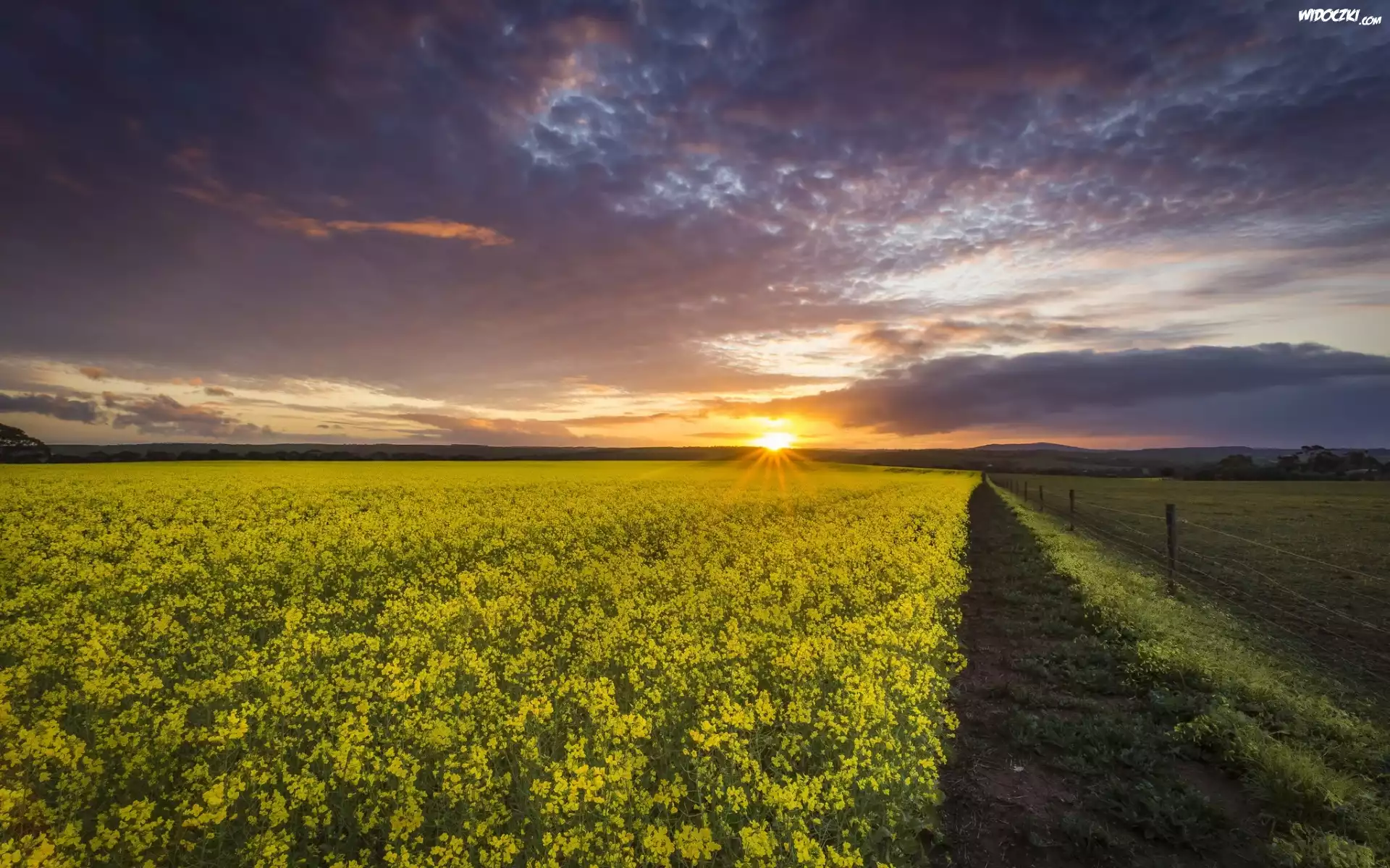 Zdjęcia, Zachód słońca, Pole, Rzepak