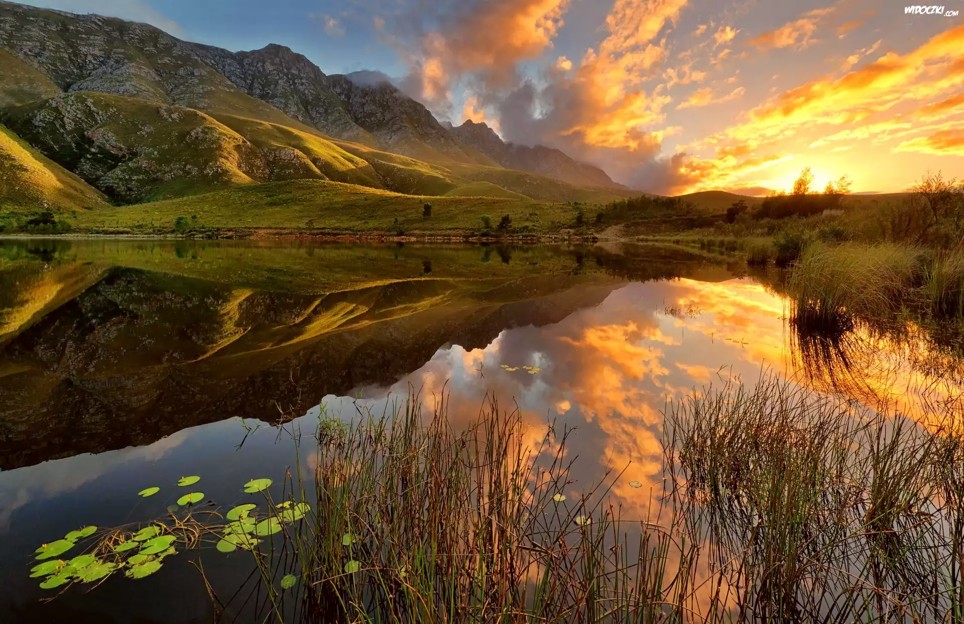 Zdjęcia, Zachód, Słońca, Jezioro, Południowa Afryka