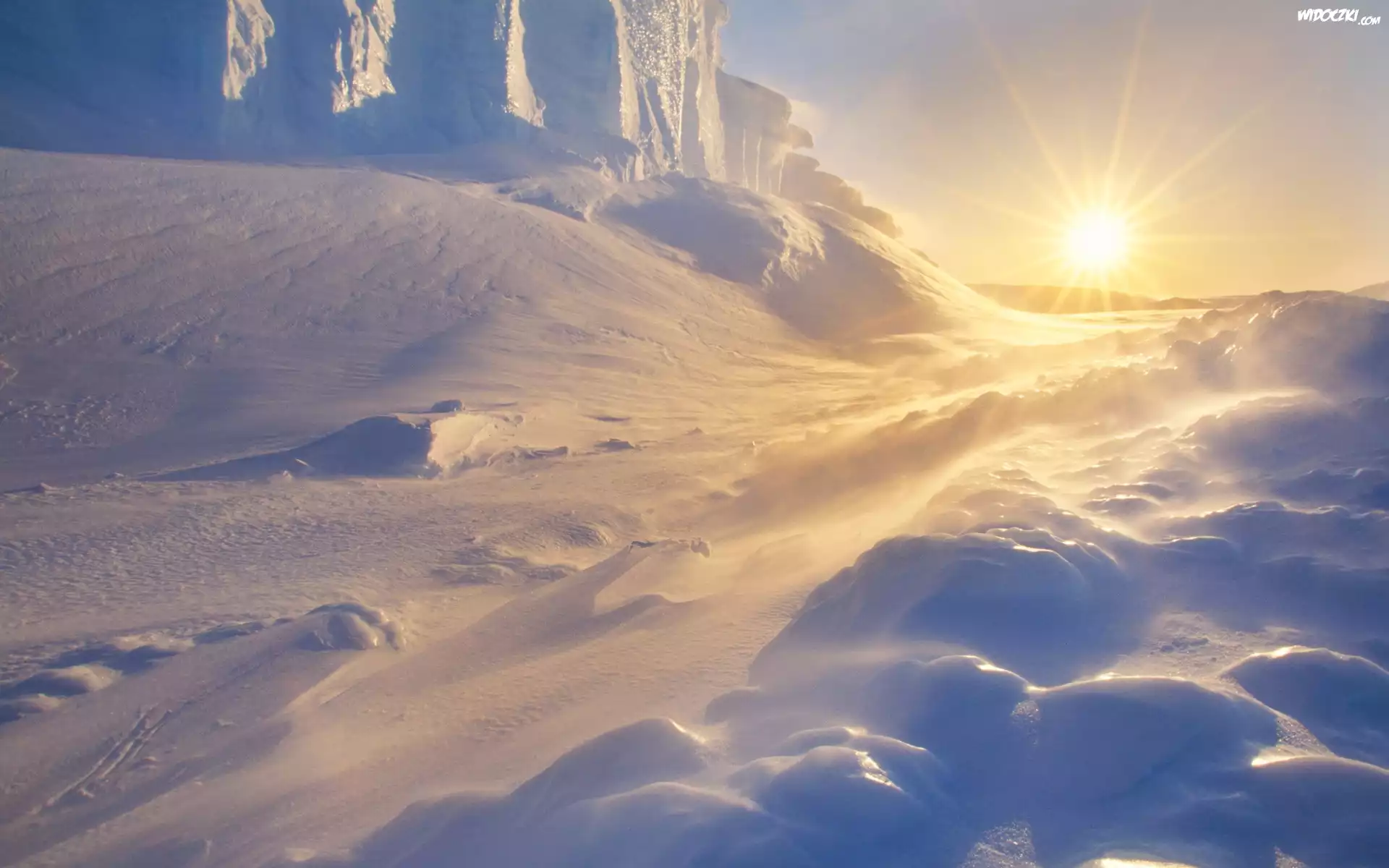 Zdjęcia, Zachód, Słońca, Promienie, Lodowiec, Zima, Góry