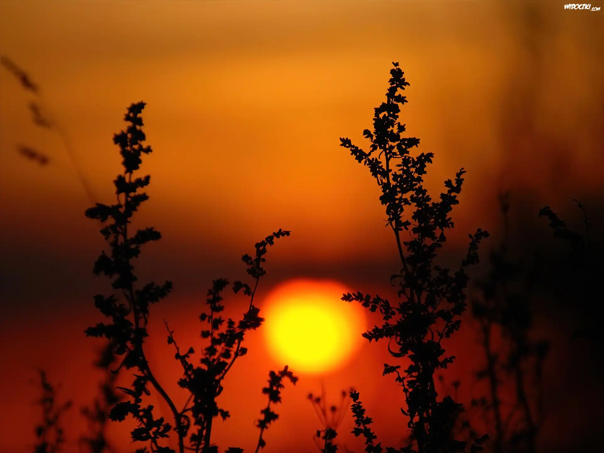 Zdjęcia, Zachod Słońca, Widziany, Przez, Trawę