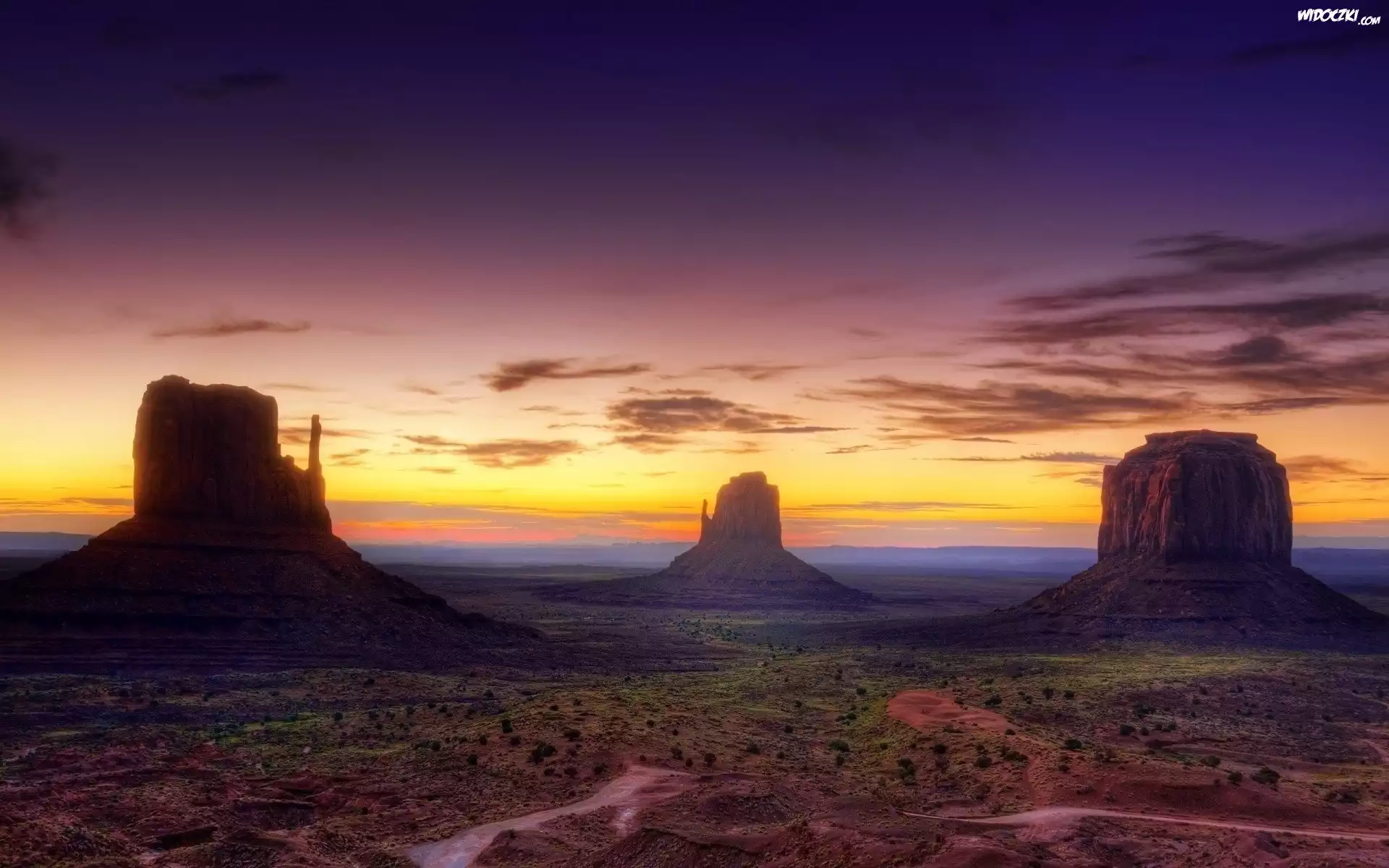 Zdjęcia, Zachód, Słońca, Pustynia, Skały