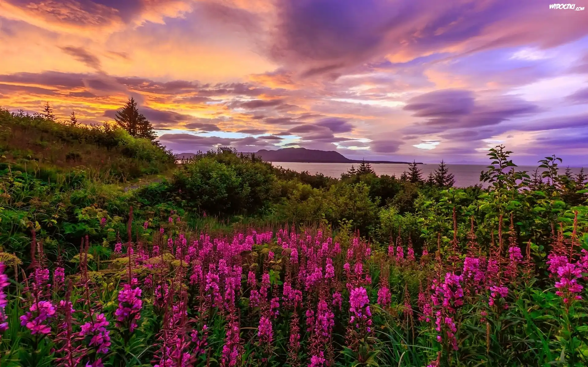 Zdjęcia, Zachód, Słońca, Przyroda, Rośliny, Kwiaty