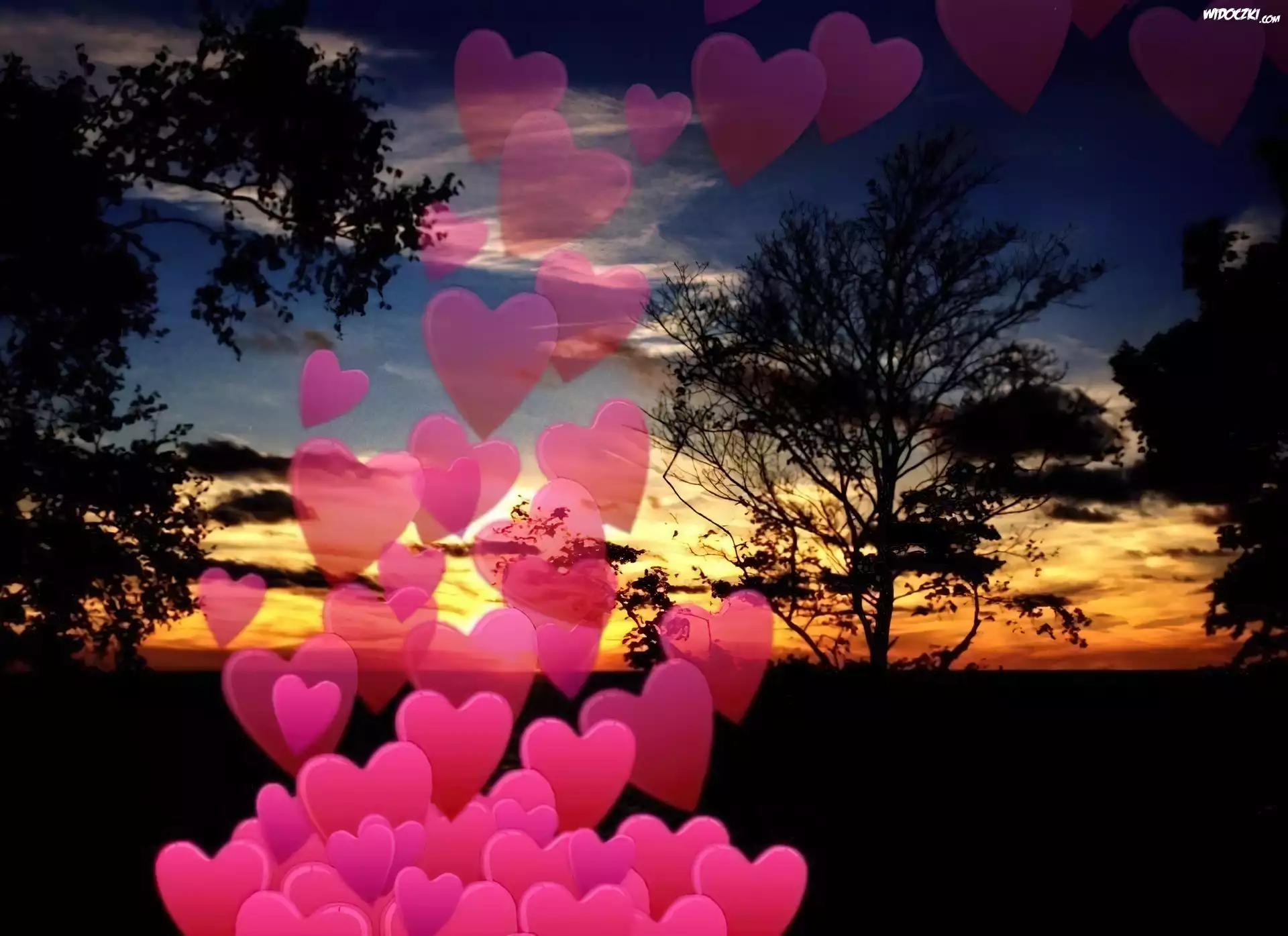 Zdjęcia, Zachód, Słońca, Różowe, Serduszka