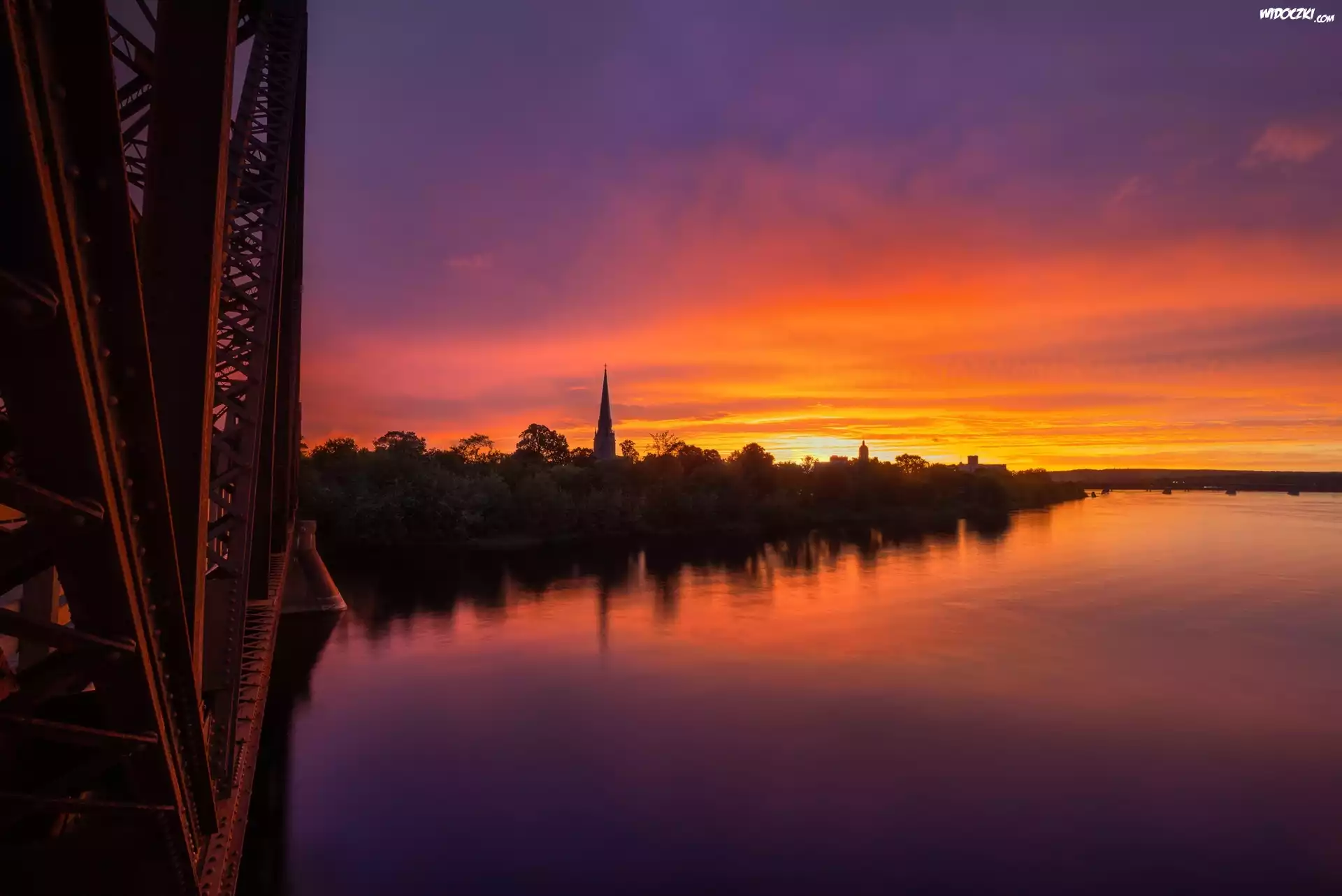 Zdjęcia, Rzeka, Zachód słońca, Niebo, Nowy Brunszwik, Kanada