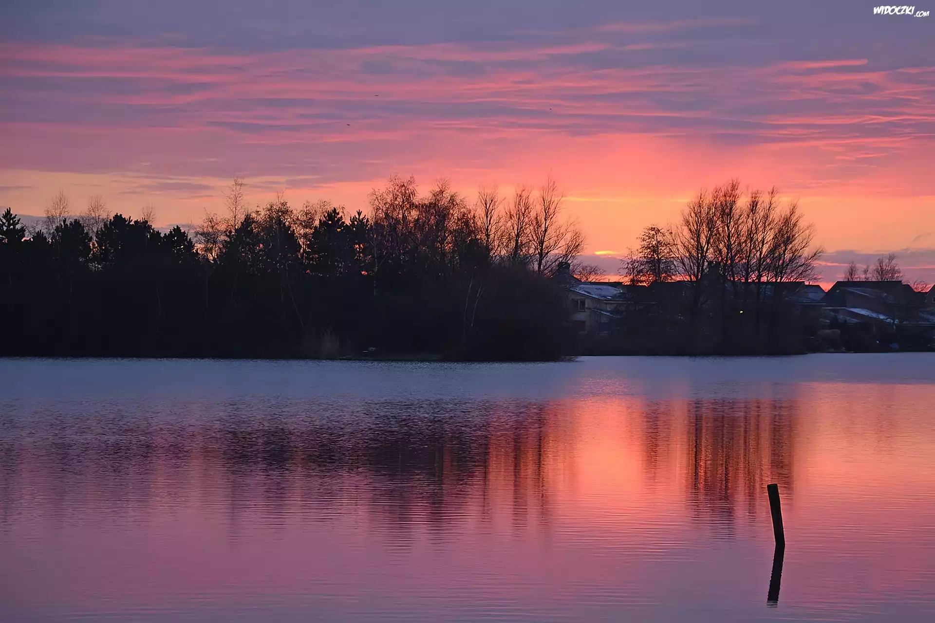 Zdjęcia, Zachod Słońca, Rzeka, Drzewa
