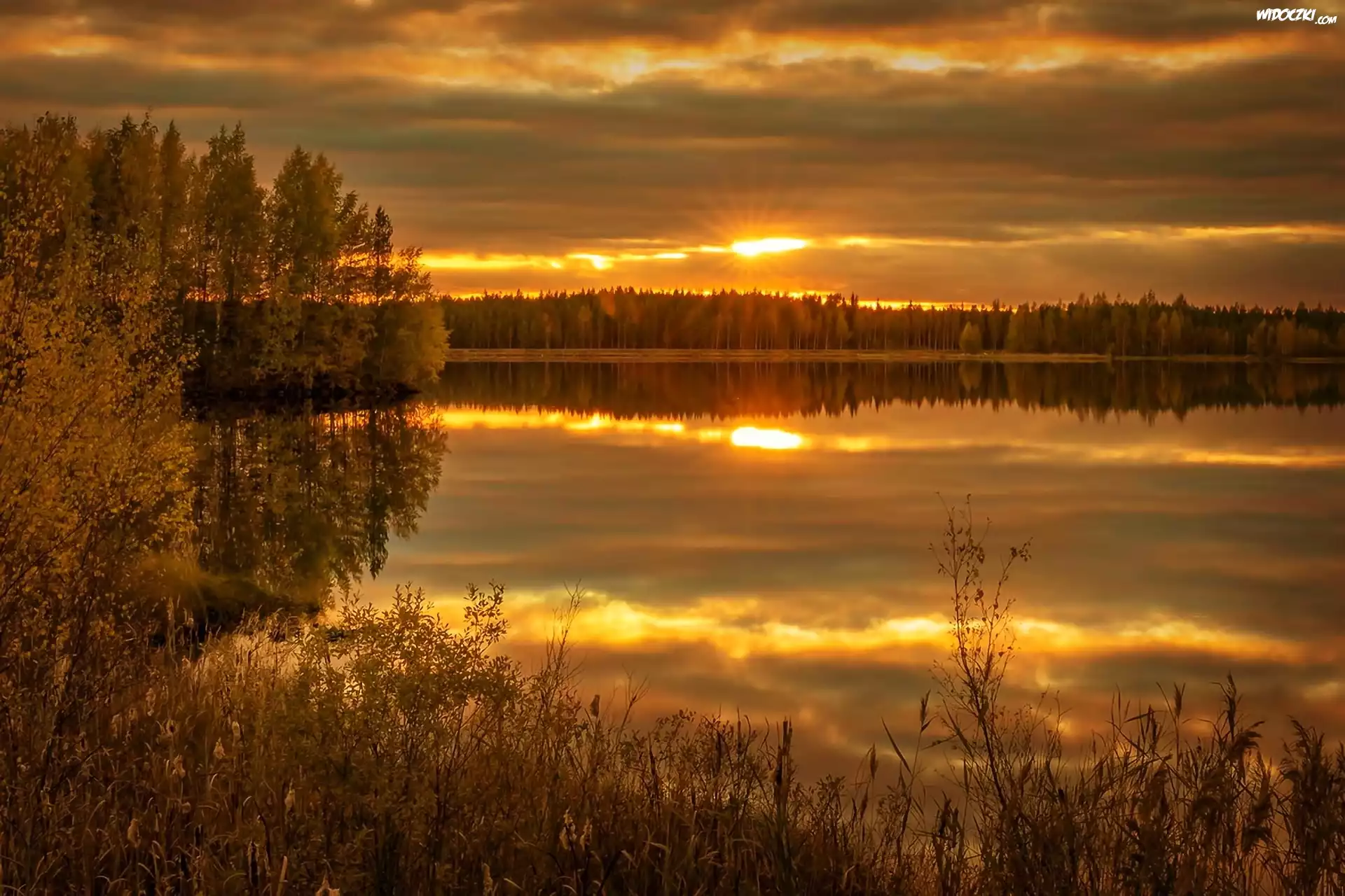 Zdjęcia, Zachód, Słońca, Rzeka, Las