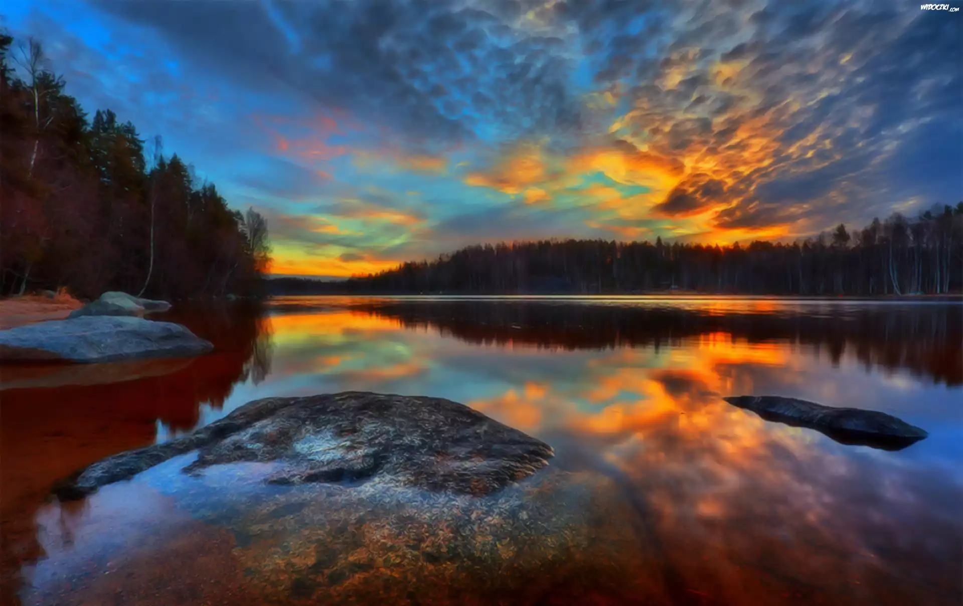 Zachód Słońca, Chmury, Drzewo Niebo, Drzewo, Zachód Słońca Las, Odbicie, Drzew, Strumyk Wyżłobione, Koryto, Rzeki Zachód Słońca, Góra Rzeczka, Księżyc, Skały, Fantasy ZachmurzonyZachód Słońca Góry, Lasy, Rzeka Drzewo, Zachód Słońca Jesień, Rzeka, Mostek Zachód Słońca Leśna, Rzeka, Zima Zachód Słońca, Plaża, Skały Szczyty, Gór, Rzeczka, Białe, Obłoczki, Niebo