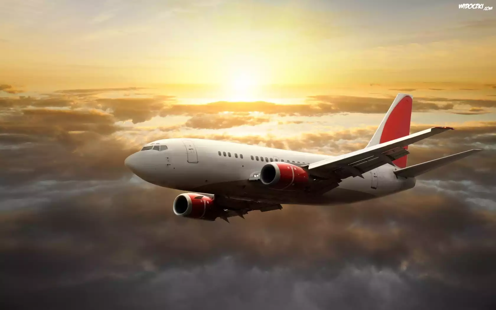 Zdjęcia, Zachód, Słońca, Samolot, Chmury