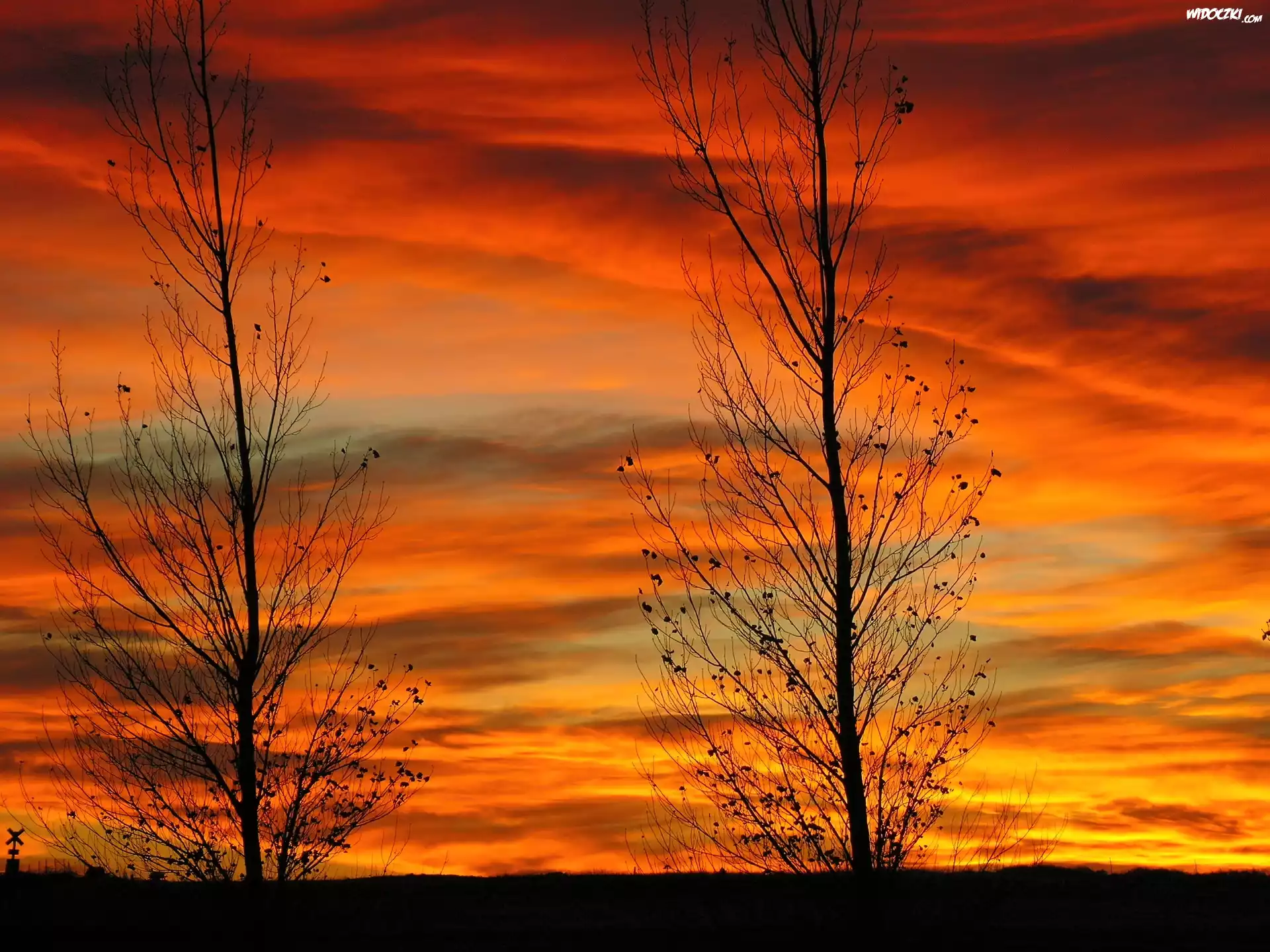 Zachód, Słońca, Dwa, Samotne, Drzewka