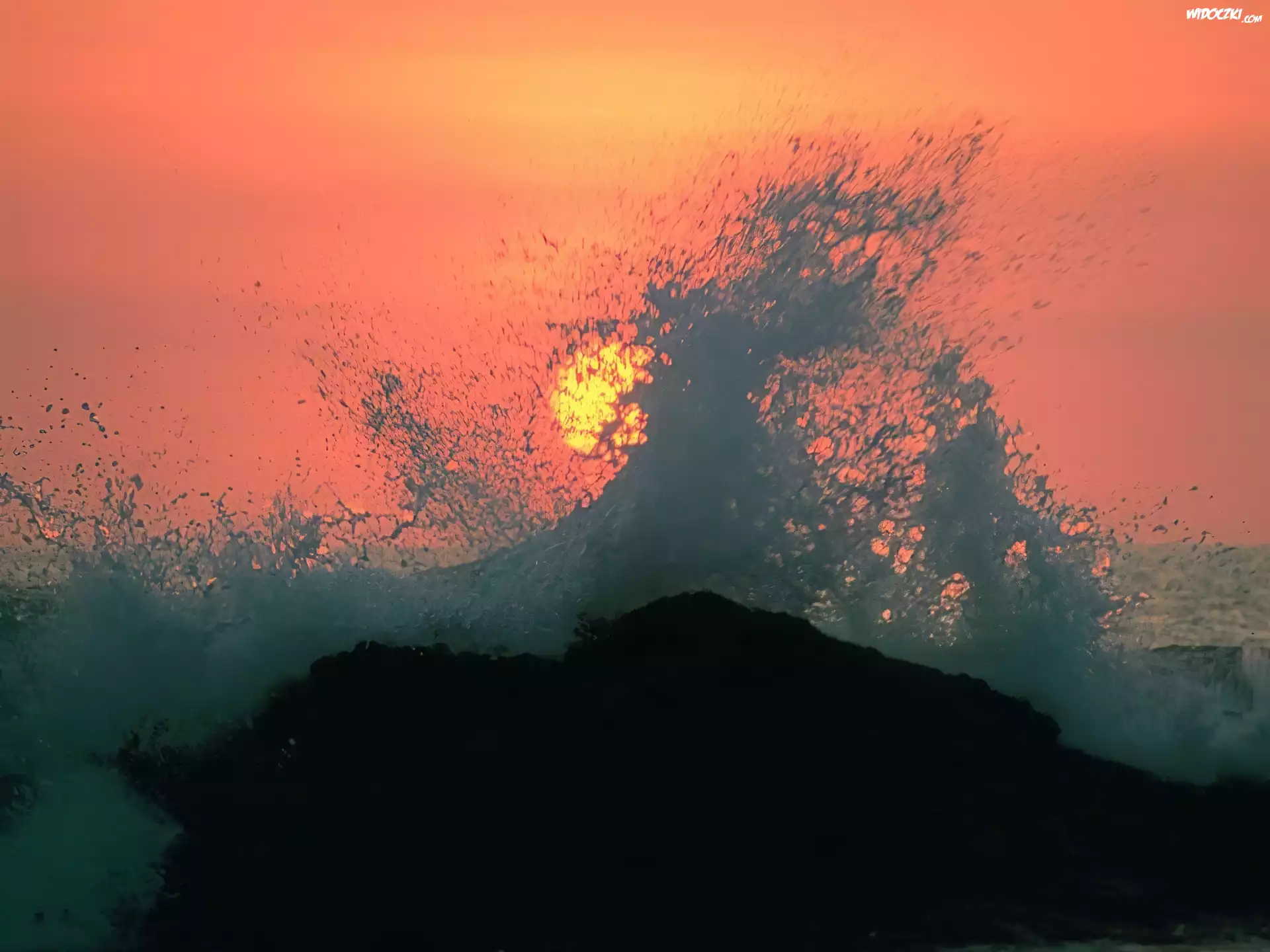 Zdjęcia, Zachód Słońca, Skała, Fala
