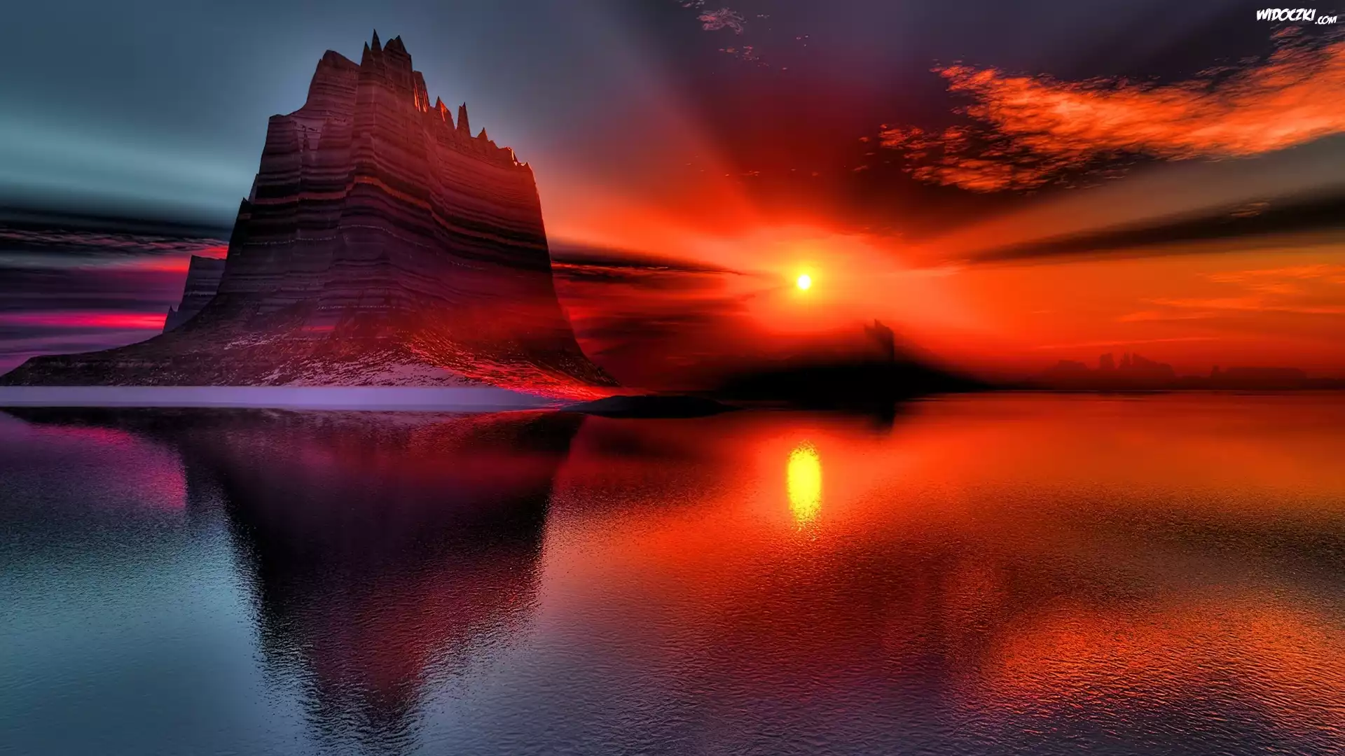 Zdjęcia, Zachód, Słońca, Skała, Ocean