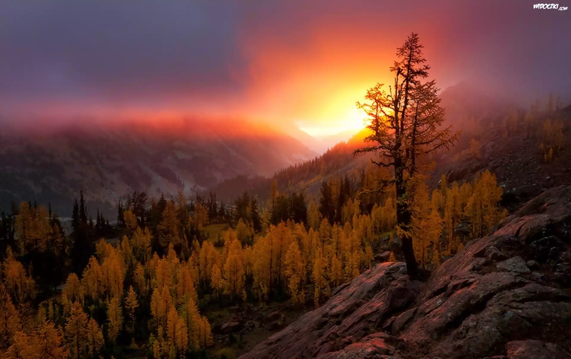 Zdjęcia, Zachód, Słońca, Skały, Las