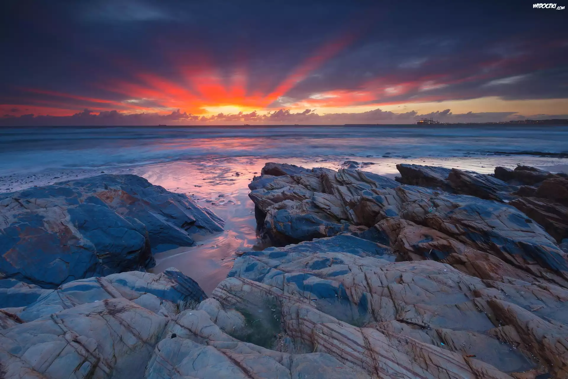 Zdjęcia, Zachód Słońca, Skały, Morze