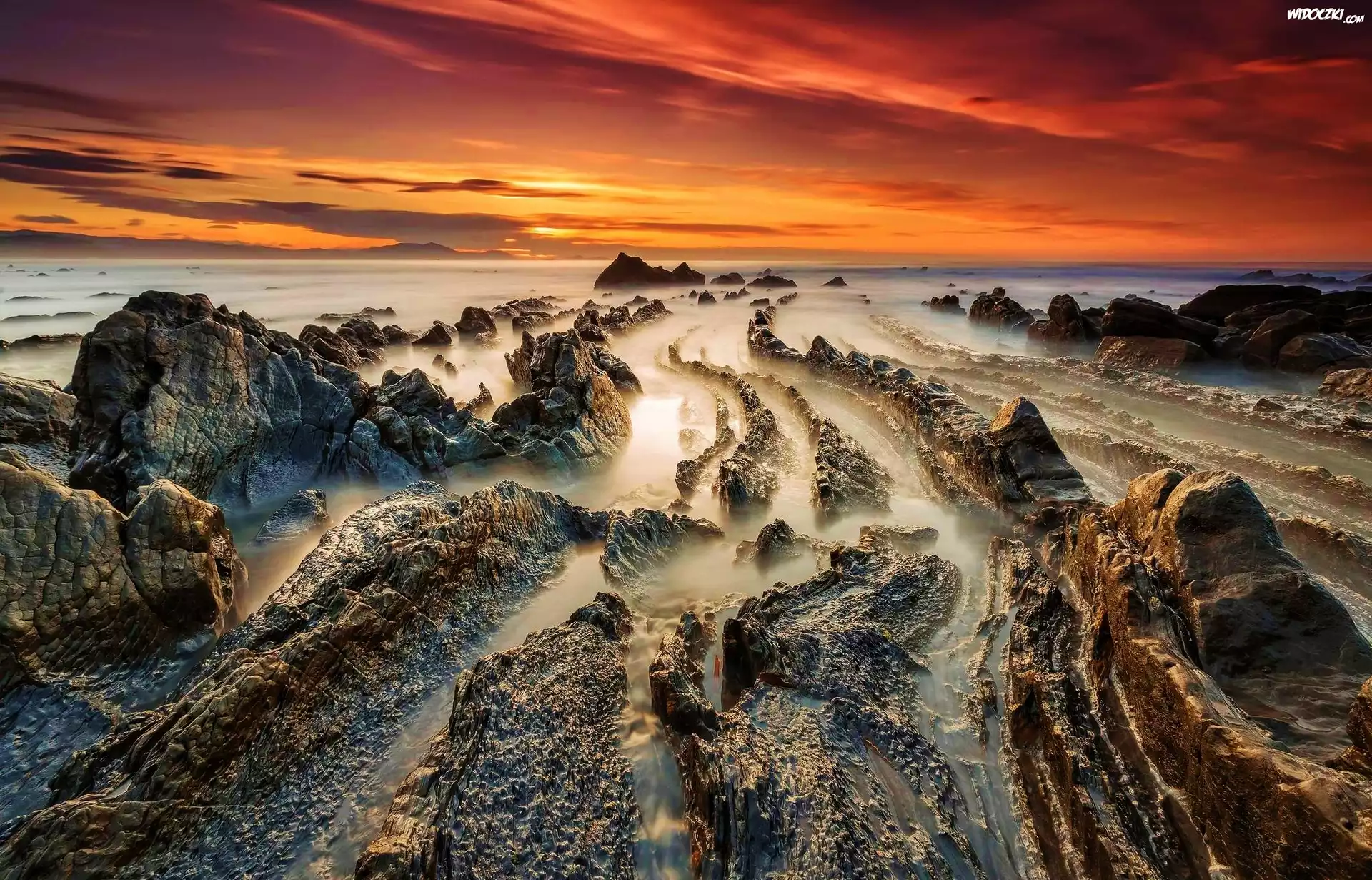 Zdjęcia, Zachód, Słońca, Skały, Morze