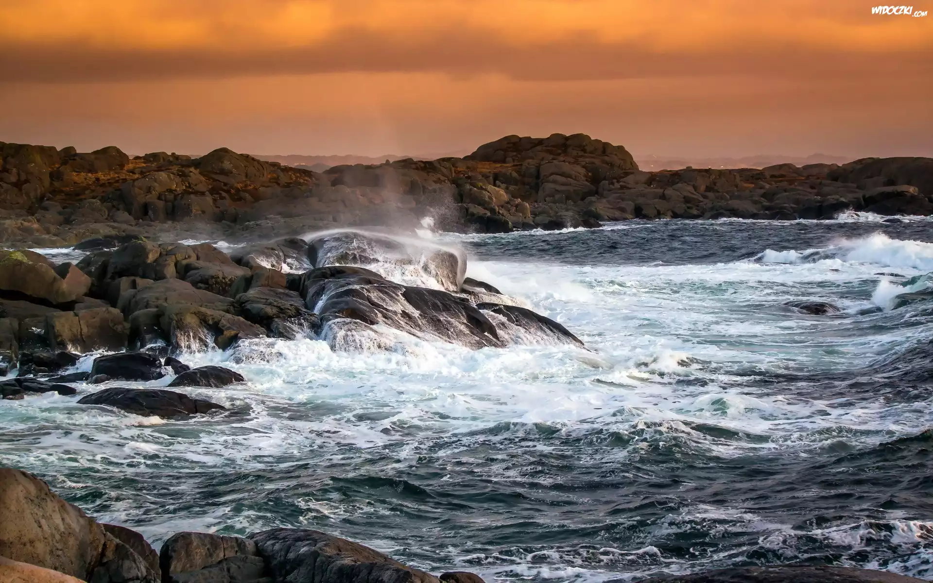 Zdjęcia, Zachód, Słońca, Skały, Morze