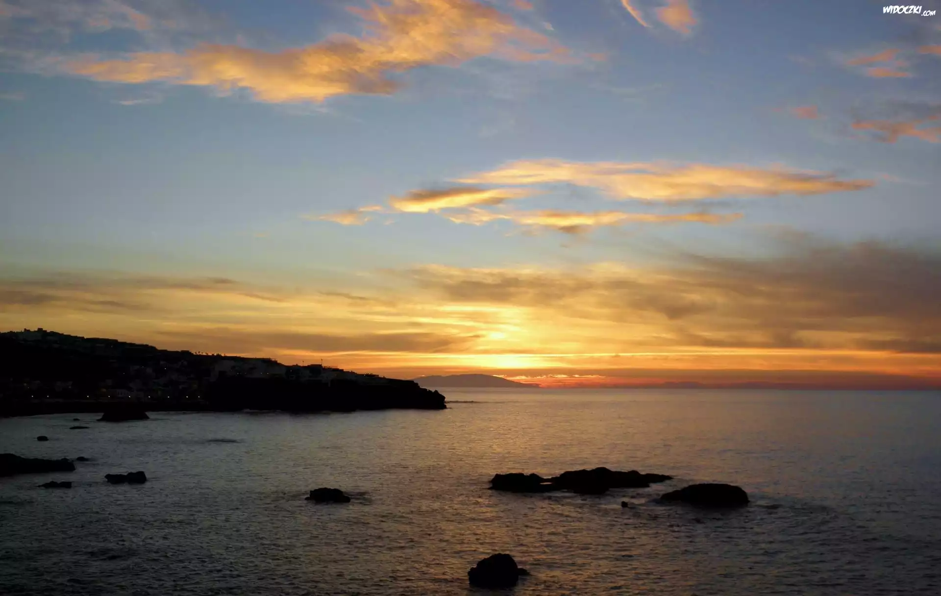 Zdjęcia, Zachód, Słońca, Skały, Morze