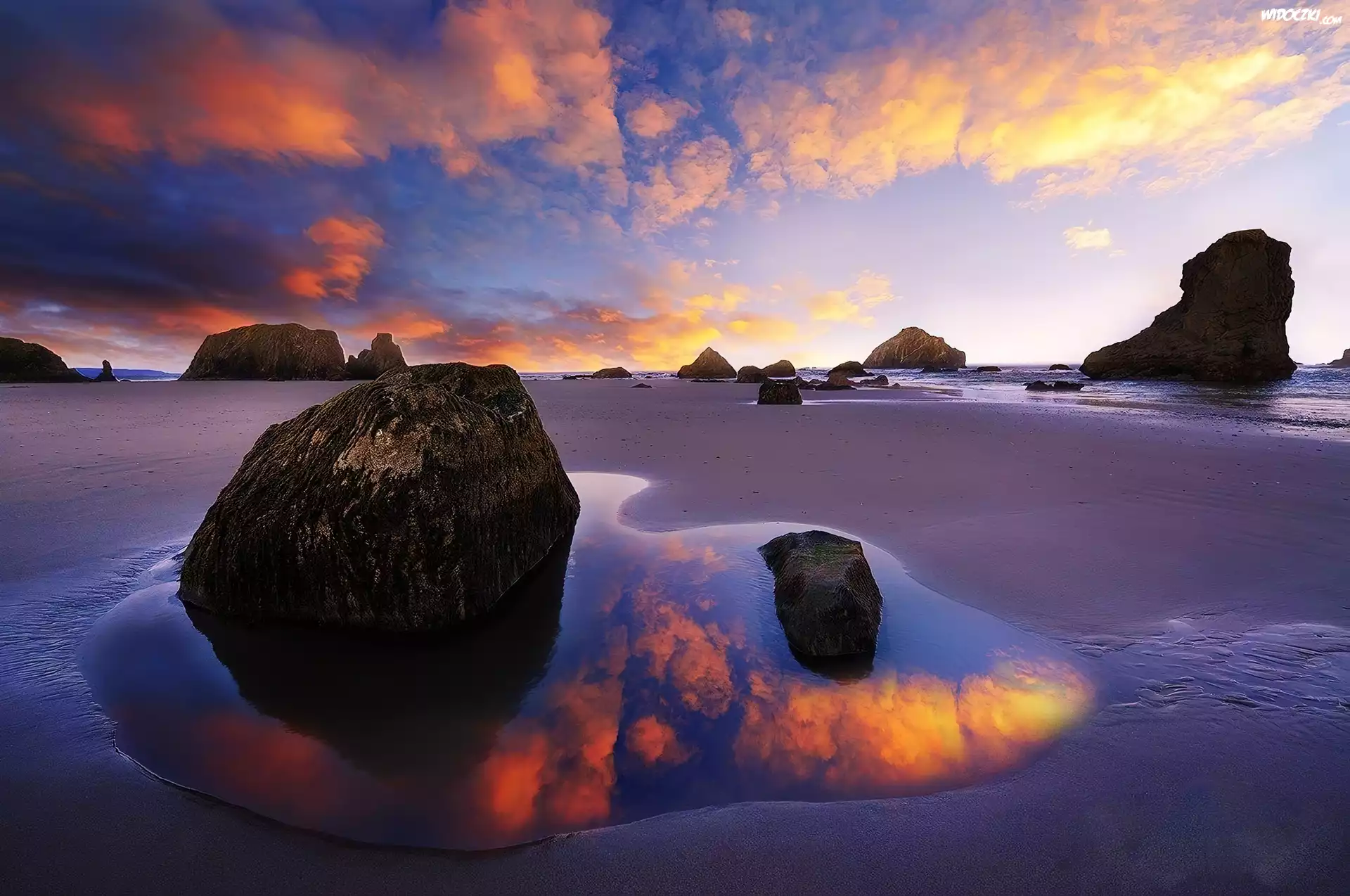 Zdjęcia, Zachód, Słońca, Skały, Odbicie