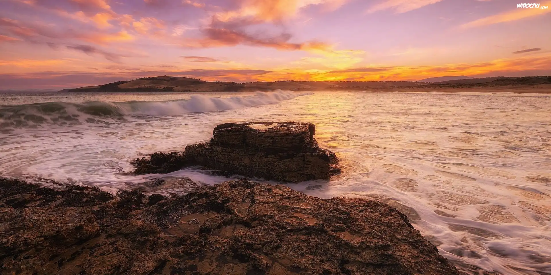 Zdjęcia, Zachód, Słońca, Skały, Rzeka