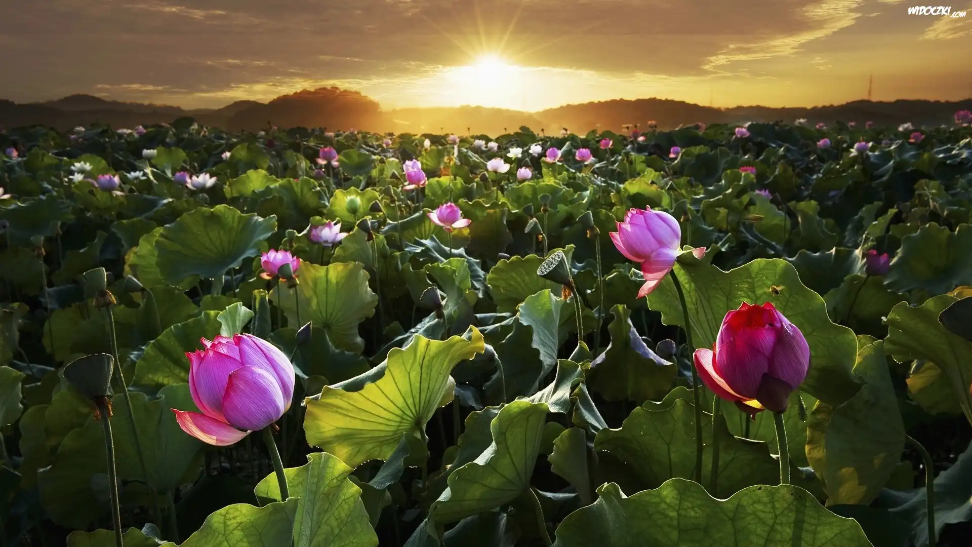 Zdjęcia, Zachód, Słońca, Promienie, Słońca, Kwiaty