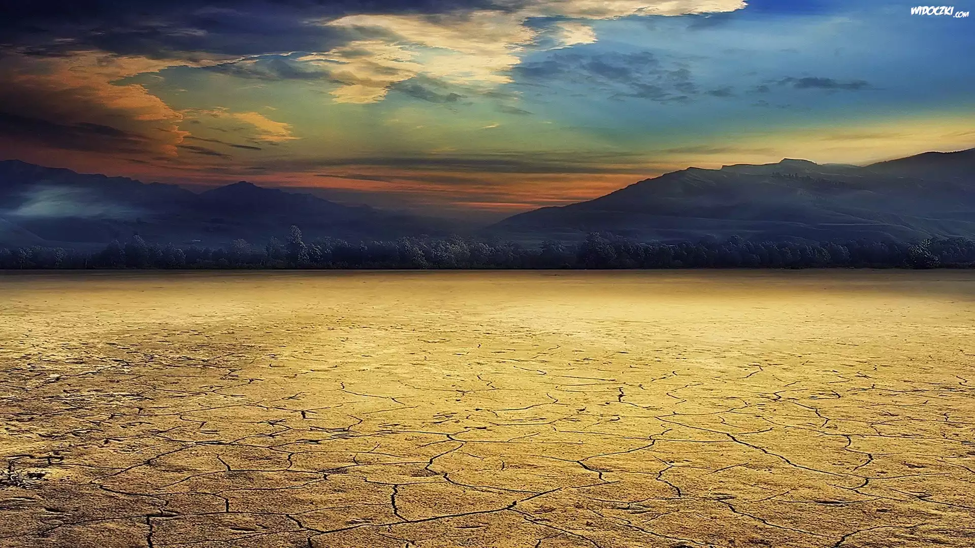 Zdjęcia, Zachód Słońca, Góry, Spękana, Ziemia