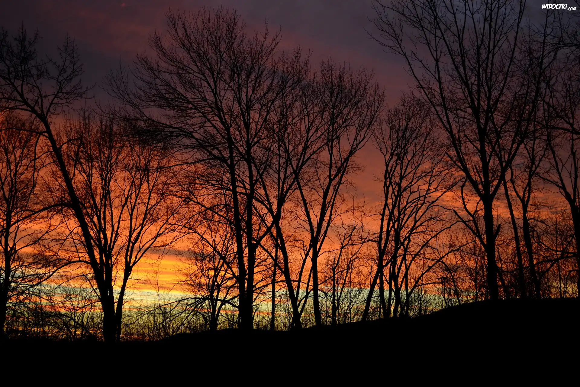 Zdjęcia, Zachód, Słońca, Suche, Drzewa
