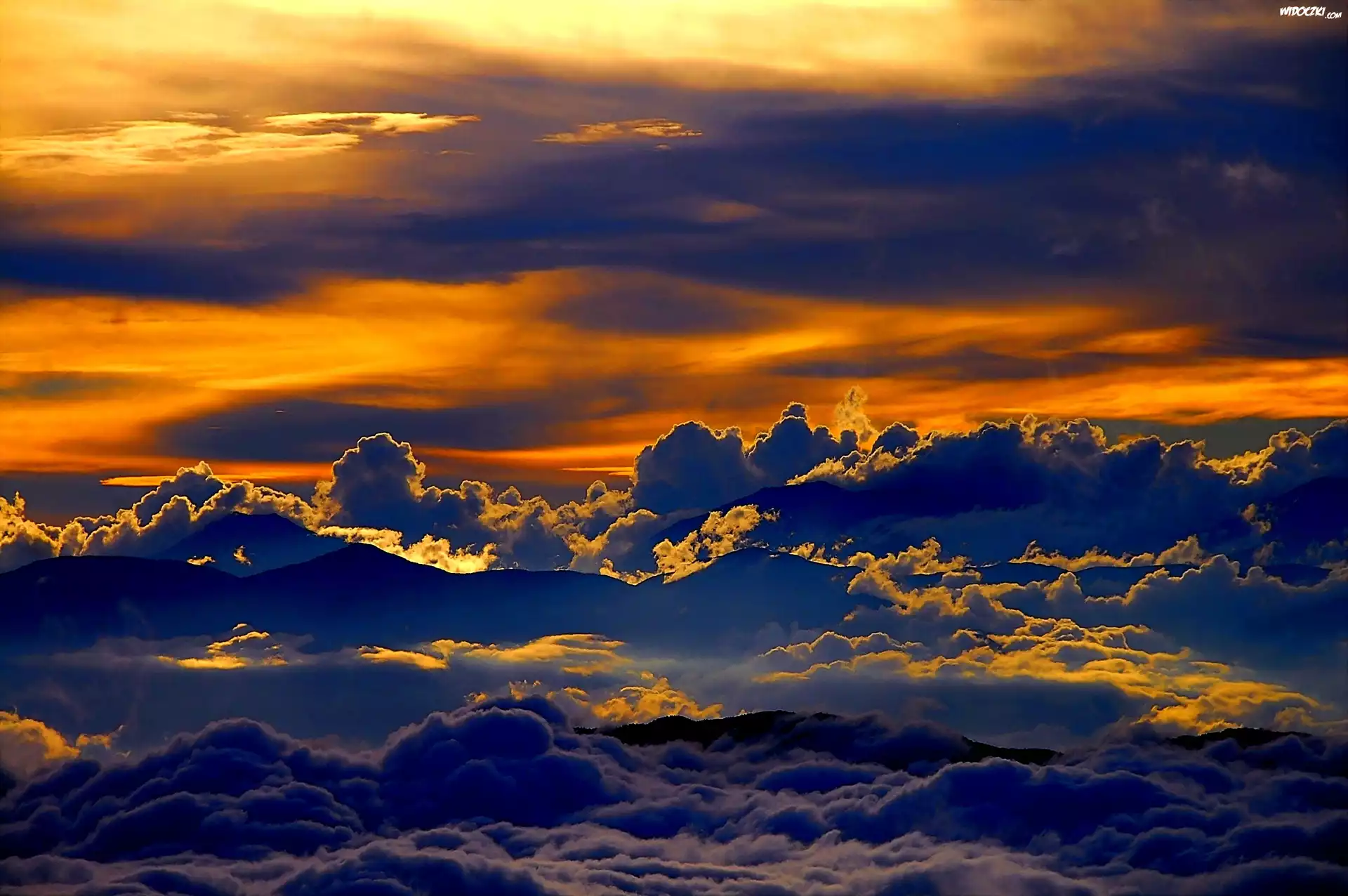 Zdjęcia, Zachód, Słońca, Chmury, Szczyty, Gór