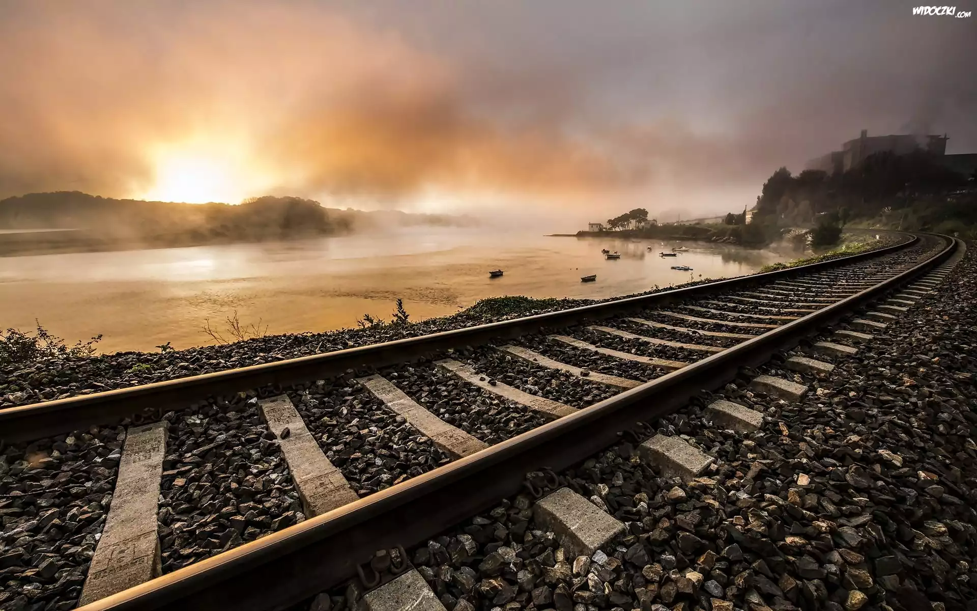 Zdjęcia, Zachód Słońca, Tory, Kamienie