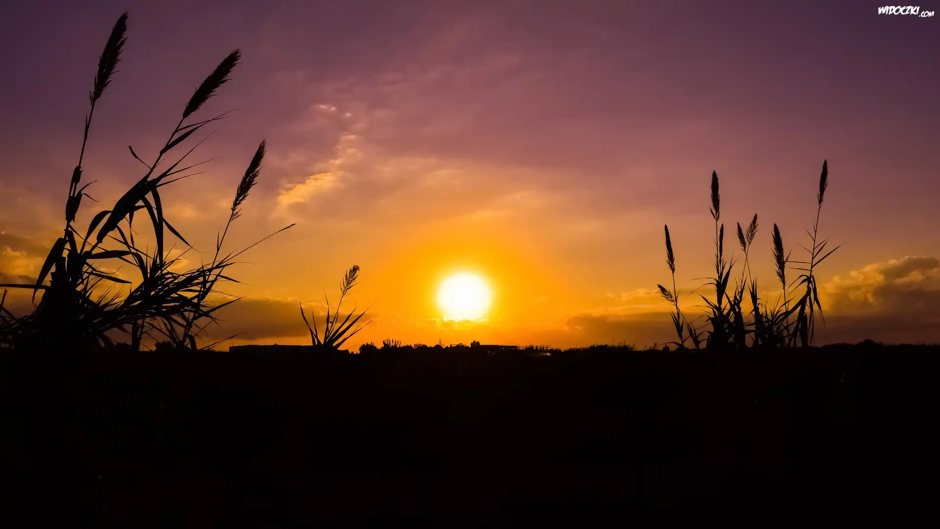 Zachód słońca, Trzciny, Trawa