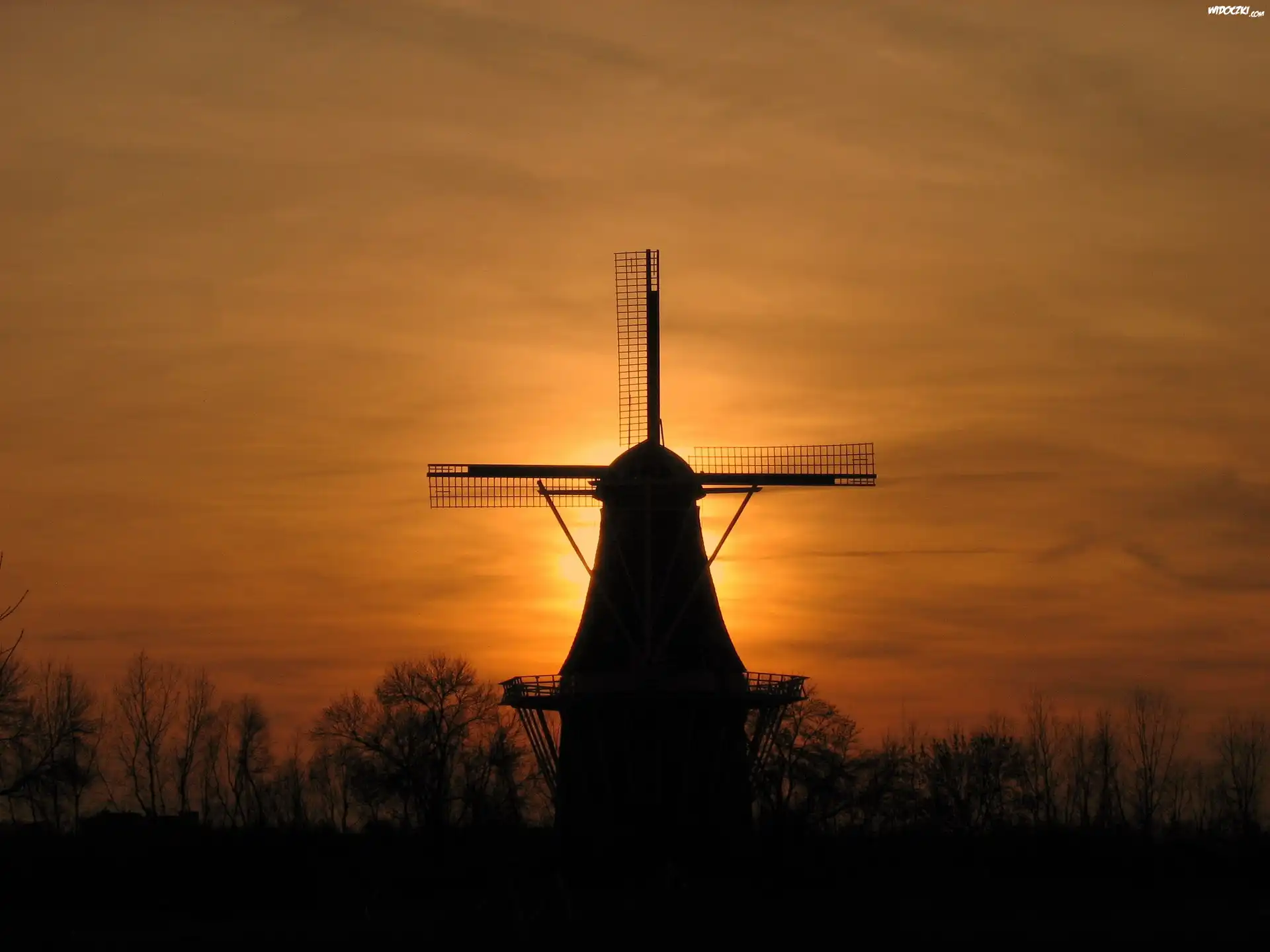 Zdjęcia, Wiatrak, Zachód, Słońca