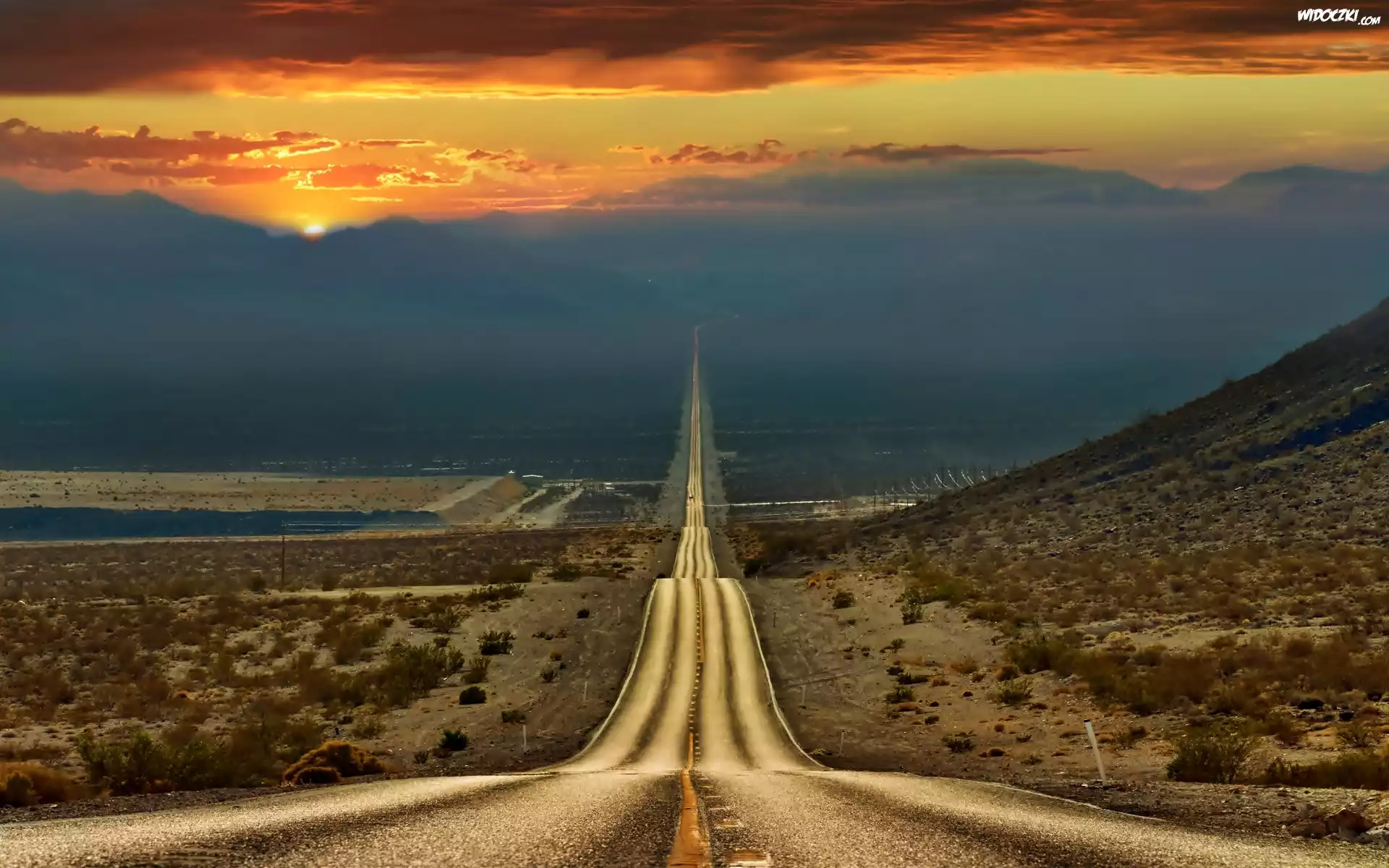 Zdjęcia, Zachód Słońca, Pustynia, Droga, Wieczór, Dolina