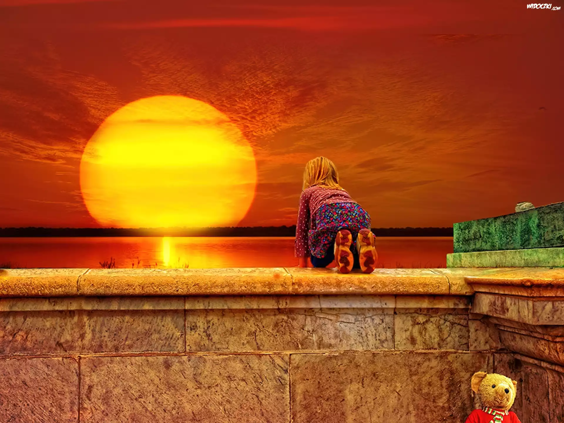 Zdjęcia, Zachód, Słońca, Woda, Dziewczynka