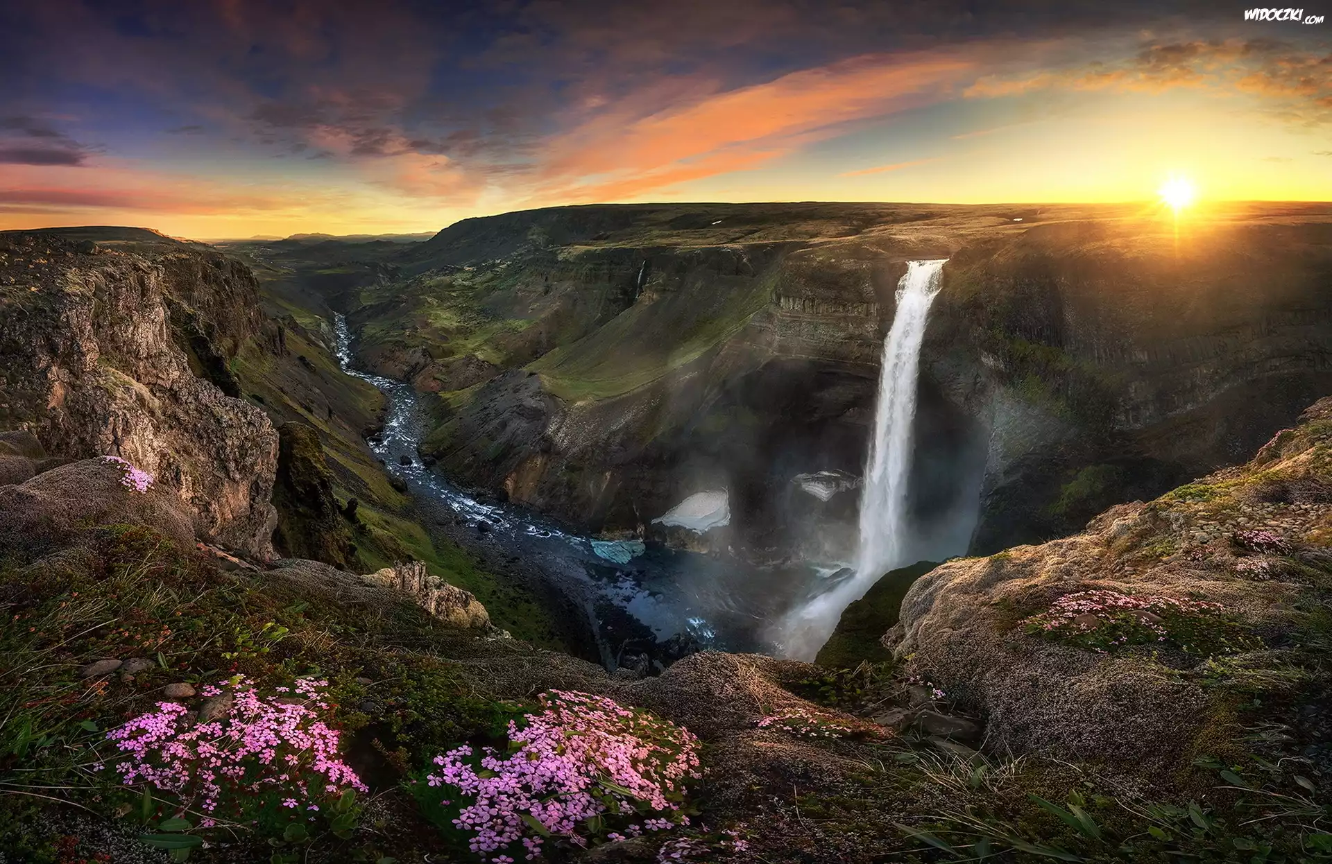 Wodospad, Zachód Słońca