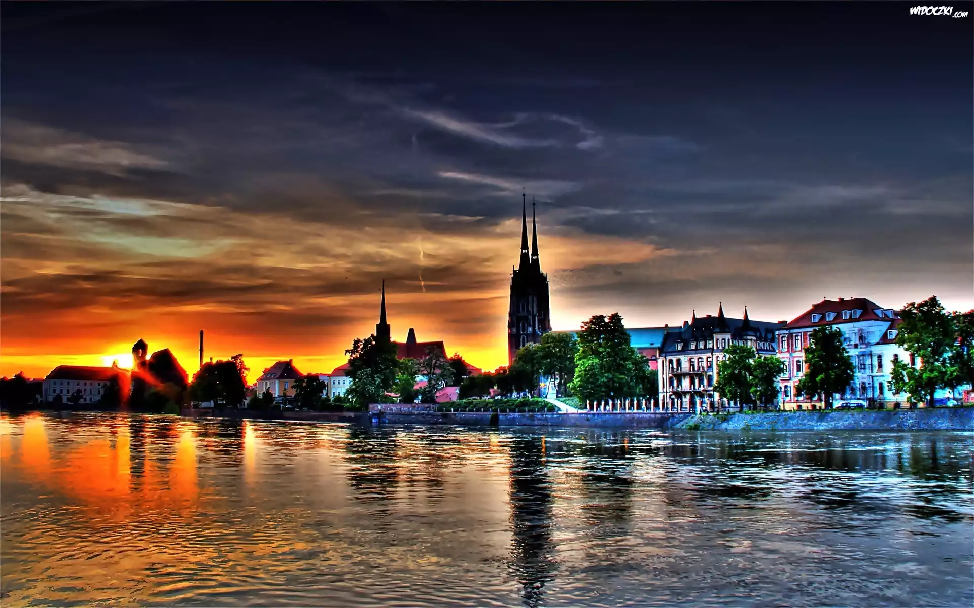 Zdjęcia, Wrocław, Zachód, Słońca, Odra, Widok, Ostrowa, Tumskiego