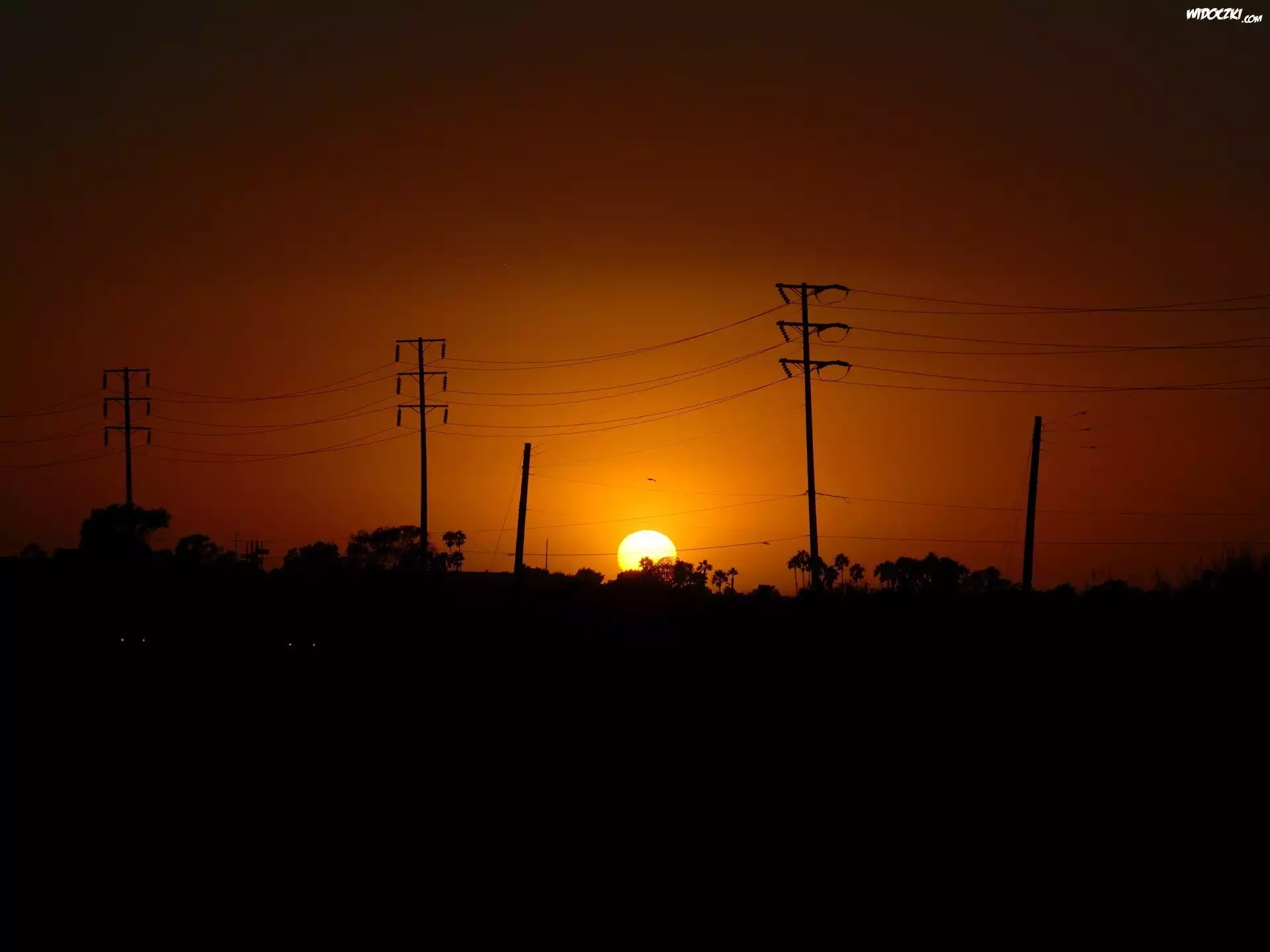 Zdjęcia, Zachód, Słońca, Słupy, Wysokiego, Napięcia