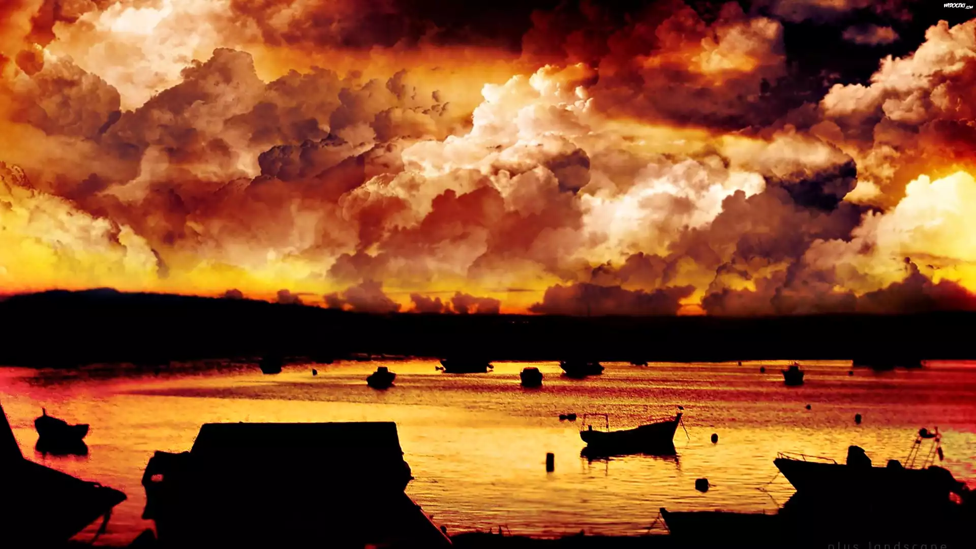 Zdjęcia, Zachód Słońca, Zatoka, Łódki